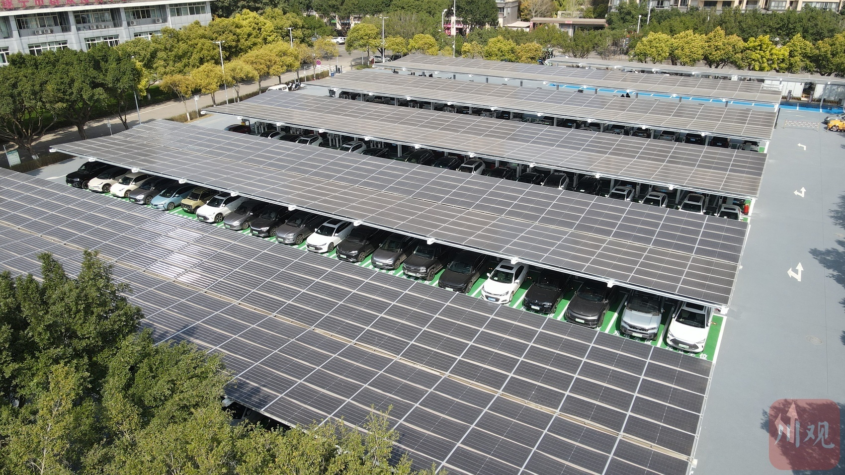 在遂寧市河東新區環島商務中心7號停車場內,有一座今年5月全面投入使用的“光儲充享”一體化示范站,站內,3500多平方米的光伏棚兼具發電、遮陽、防雨功能,每年可發電約62.31萬度。