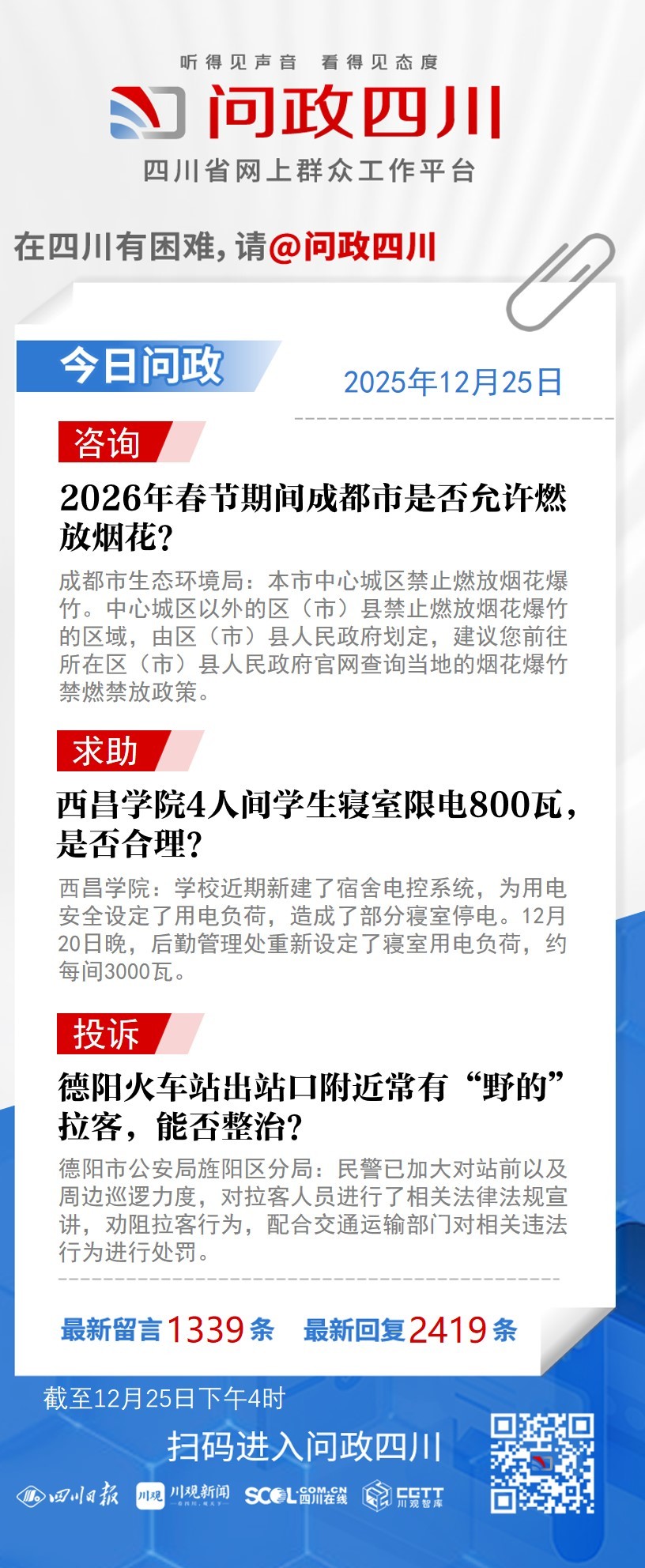 問政四川網(wǎng)友提問:在2026年春節(jié),成都市能否允許燃放煙花爆竹?讓大家熱熱鬧鬧過節(jié),增添喜慶氛圍。希望有關(guān)部門允許規(guī)定時間在固定的位置燃放。