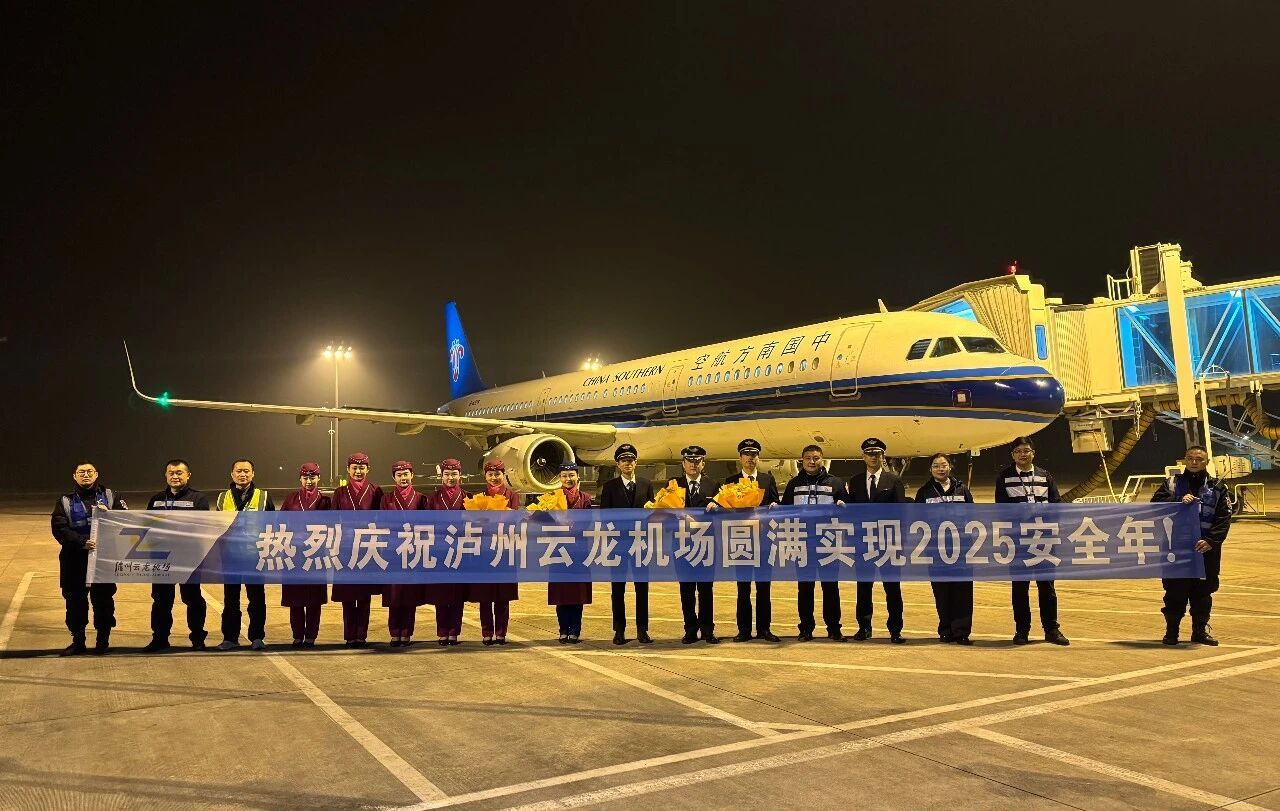 2025年12月31日晚,隨著年內最后一個航班——深圳飛來瀘州的CZ8579航班平安抵達,瀘州云龍機場圓滿實現2025安全年。這是瀘州民航組建以來第36個、轉場云龍機場以來第8個安全年。