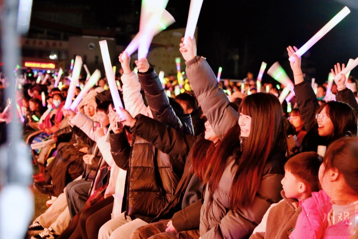 晚會在《藍蓮花》《海闊天空》等搖滾樂曲中激情上演,強勁的節奏,熾熱的演繹瞬間點燃全場氛圍,觀眾們跟著旋律揮手合唱,釋放著跨年的激情。搖滾過后,《寶興歡迎您》等曲目,醇厚深情的嗓音勾勒出寶興山河的壯美,場內多次響起情感熾熱的大合唱。“節目非常精彩,和大家一起這樣熱鬧地迎接新年,感覺特別棒!”游客喻彥佳在現場感慨道。