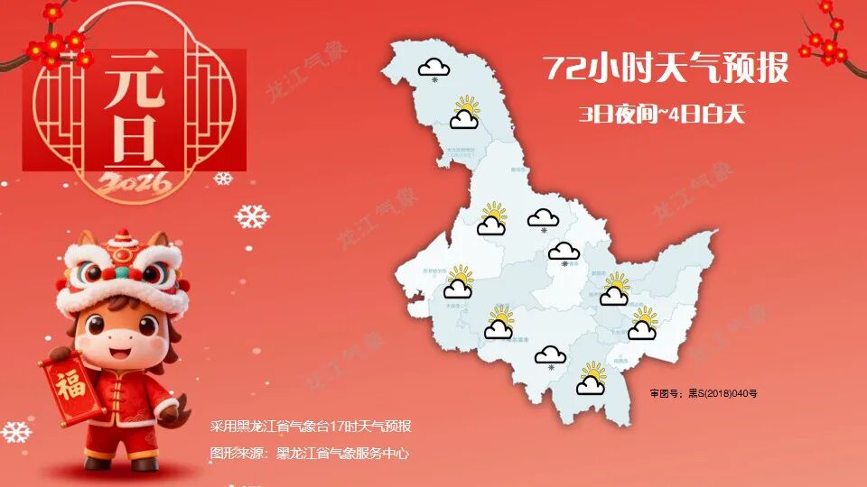 黑龍江省氣象臺2026年1月1日17時發布1日夜間到4日白天全省天氣預報: