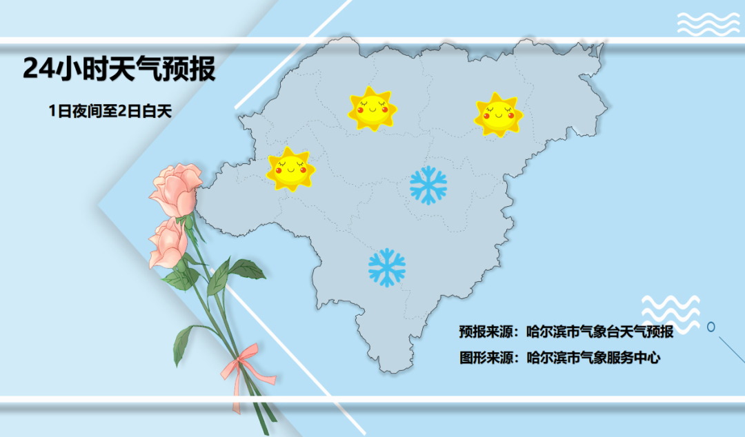 哈爾濱市氣象臺2026年1月1日發布1月1日夜間到1月4日白天全市天氣預報: