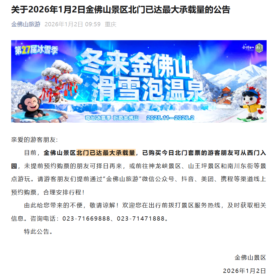 據(jù)浙江在線1月1日消息,“杭州靈隱飛來峰”小程序顯示,元旦假期三天均已顯示約滿。