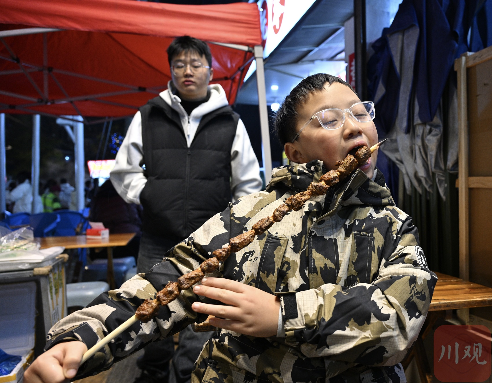 一名孩子正在擼串。