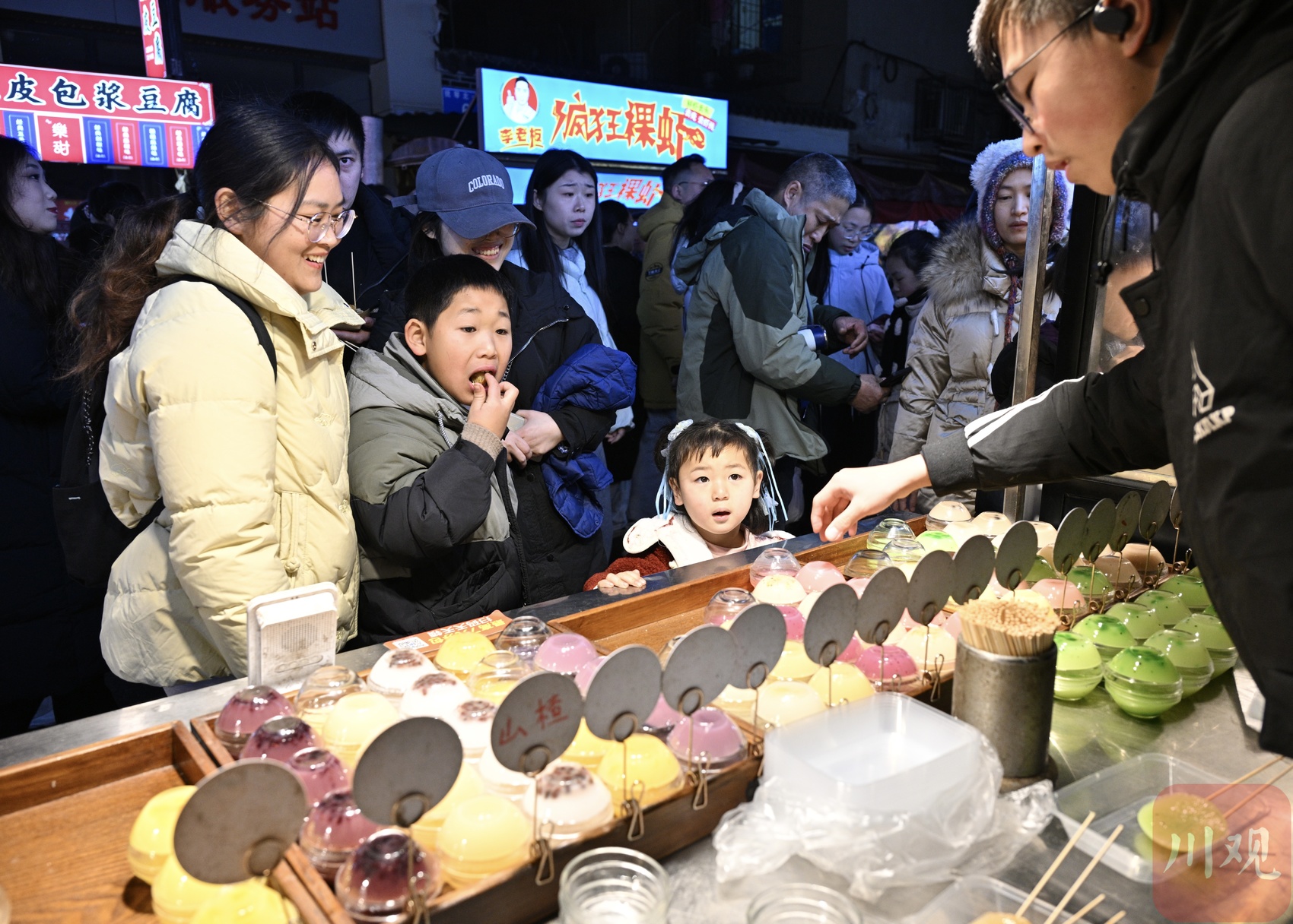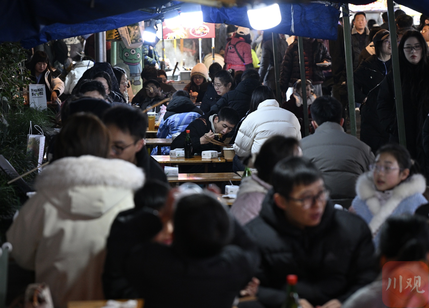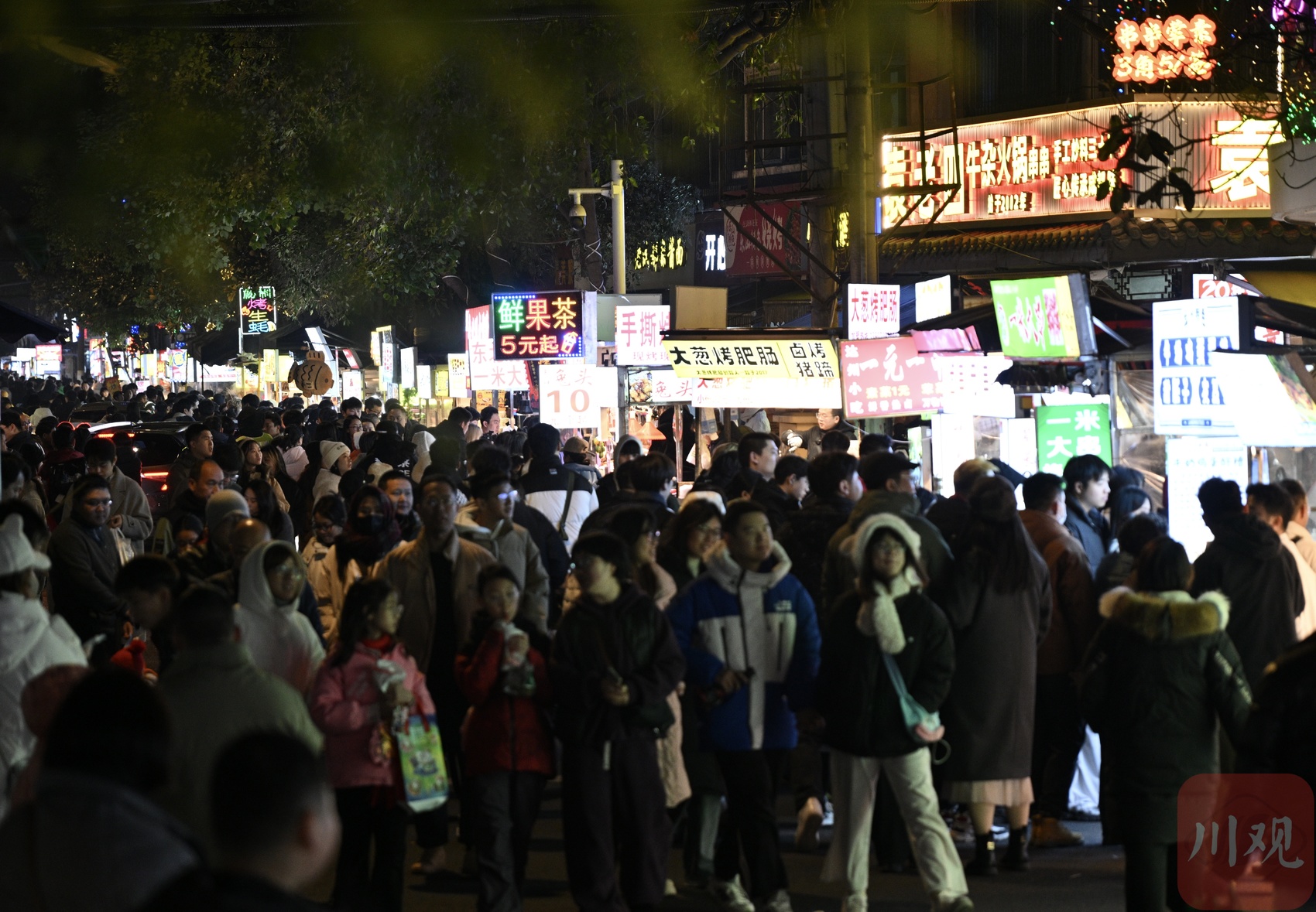1月2日晚,成都撫琴夜市燈火璀璨、人潮涌動,濃濃的煙火氣縈繞街巷,市民與游客齊聚于此,在升騰的煙火與熱鬧氛圍中,樂享元旦假日的悠閑時光。