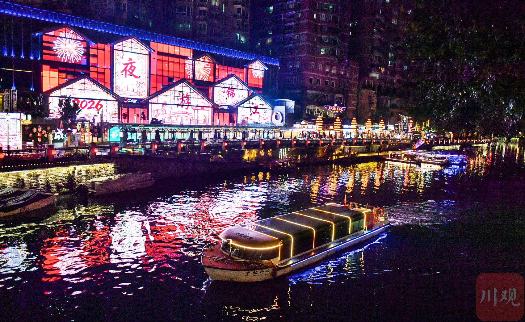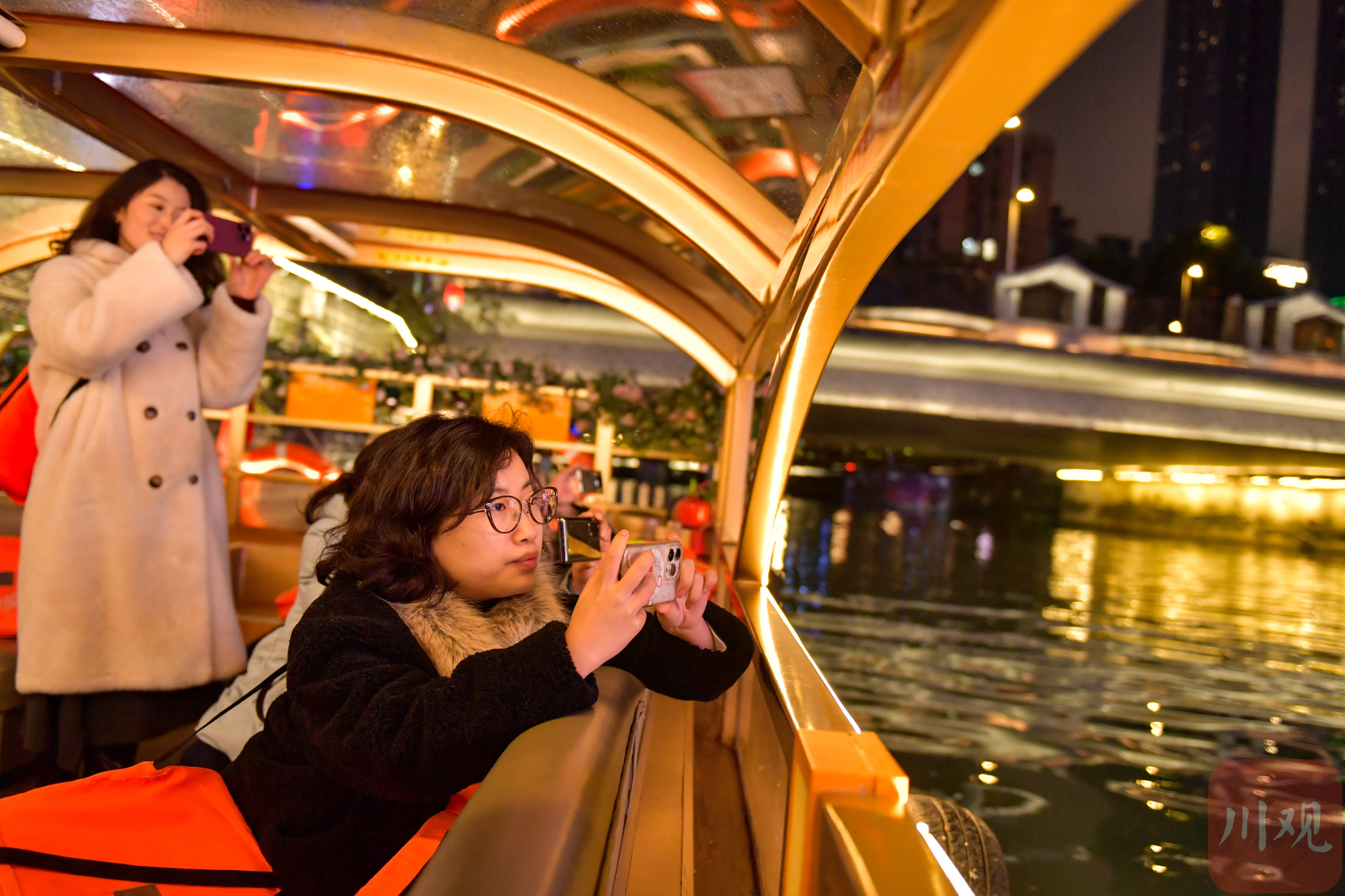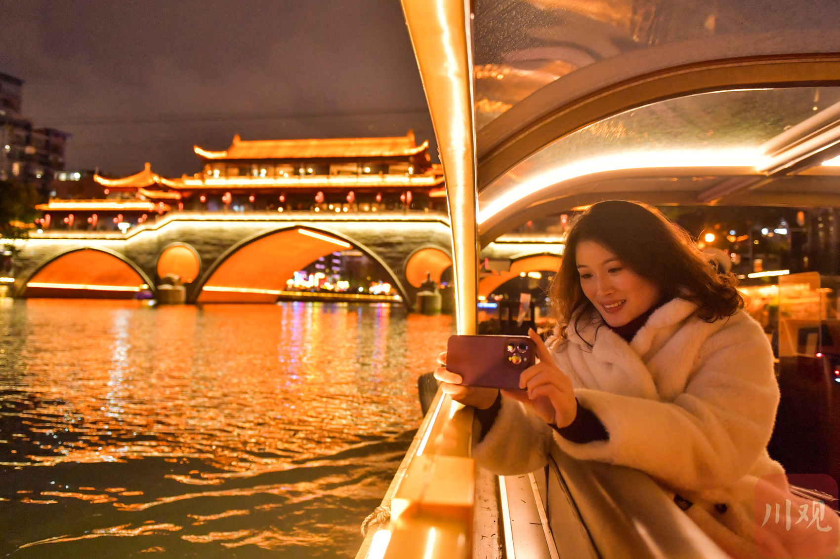 1月2日晚,成都市錦江河畔流光溢彩,景色誘人,游客紛至沓來,坐游船、觀夜景、逛市集、品美食,呈現出一片“夜經濟”紅火的景象。