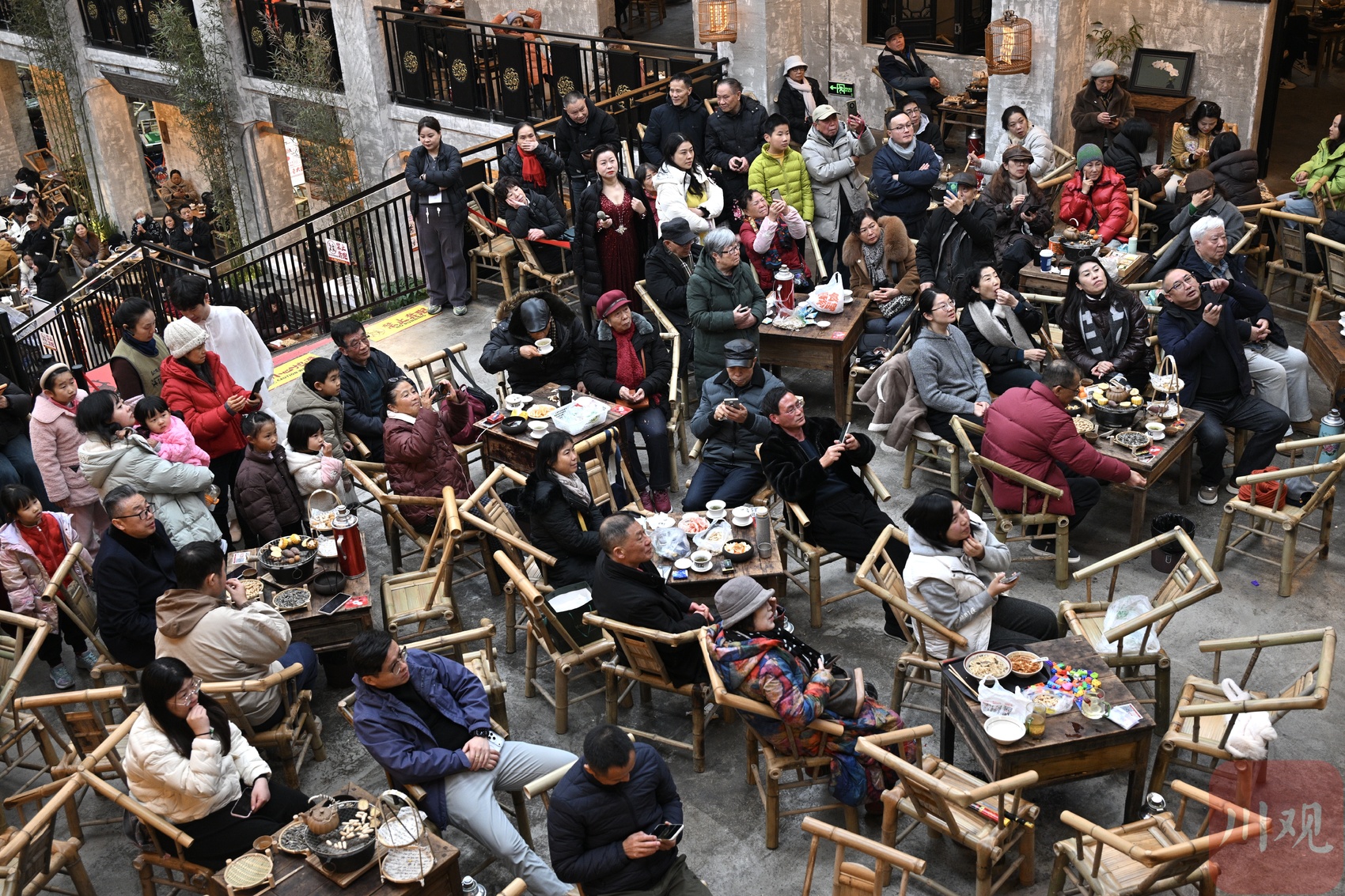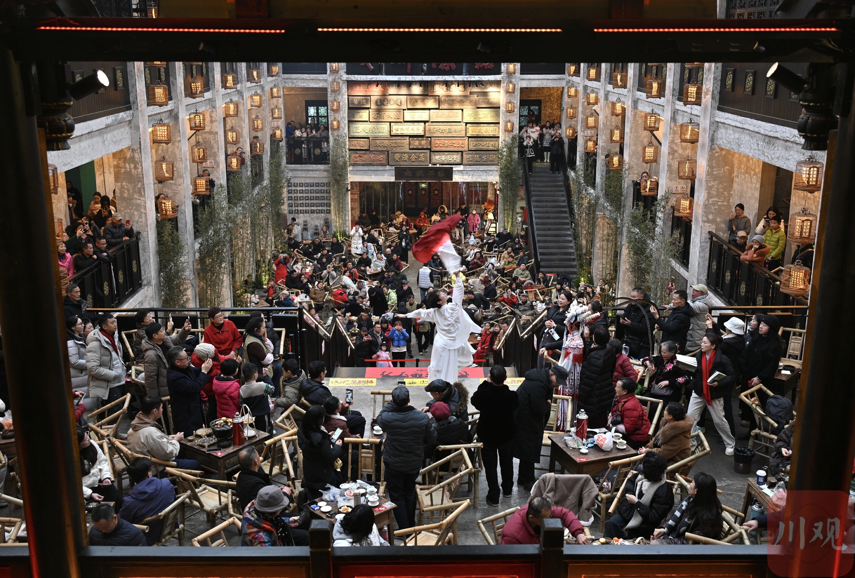 成都大旗茶館內(nèi)人聲鼎沸、熱鬧非凡。