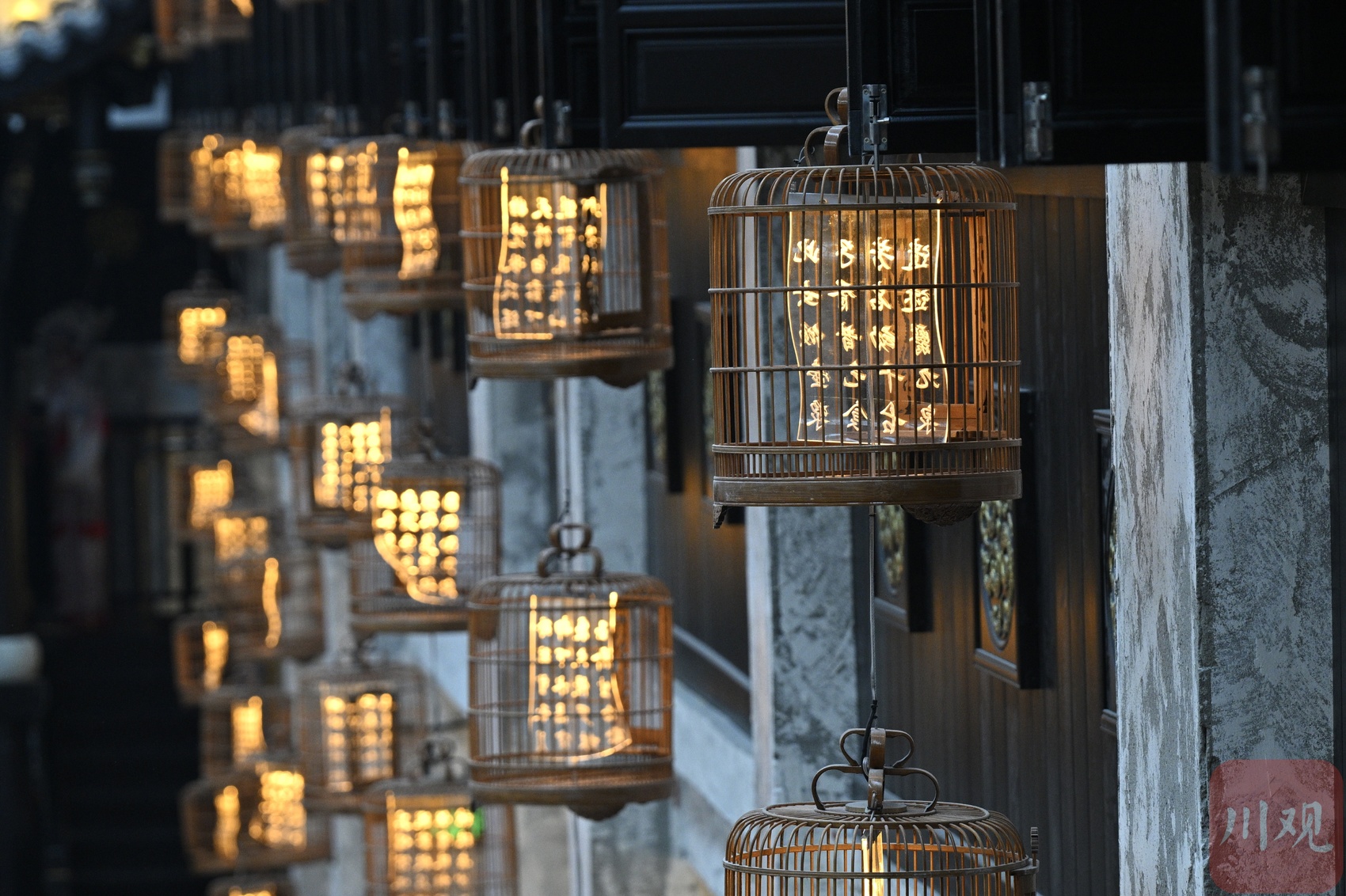 茶館里,游客們圍坐在竹制桌椅旁,手捧蓋碗茶,細(xì)品茉莉花茶的清香;桌臺(tái)上,甜豆花、紅油水餃等成都小吃香氣四溢。舞臺(tái)中央,川劇變臉、水袖等經(jīng)典表演輪番上演,引得觀眾陣陣喝彩。