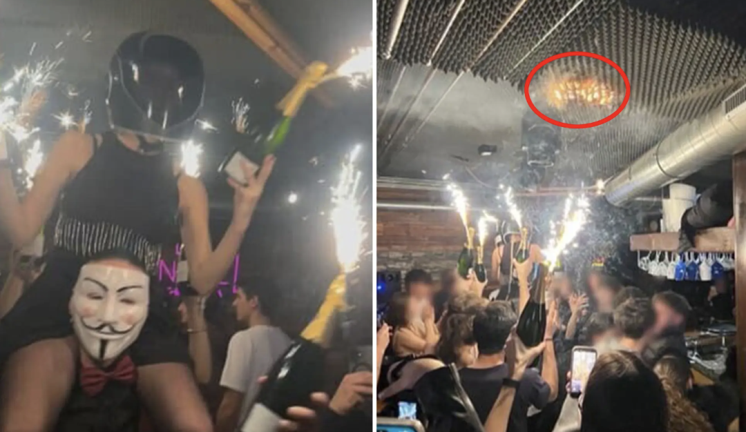 現場視頻中一幀畫面捕捉到了火災爆發的瞬間:火焰沿著低矮的天花板蔓延開來,而毫無防備的派對參與者們卻仍然高高地揮舞著煙花棒和酒瓶。另一張照片顯示一名戴著摩托車頭盔的女子舉著點燃的瓶子,被一名戴著面具的男子扛在肩上。還有視頻顯示,女服務員們高舉著燃燒的香檳酒瓶,穿梭在人群中,酒瓶幾乎要碰到天花板。