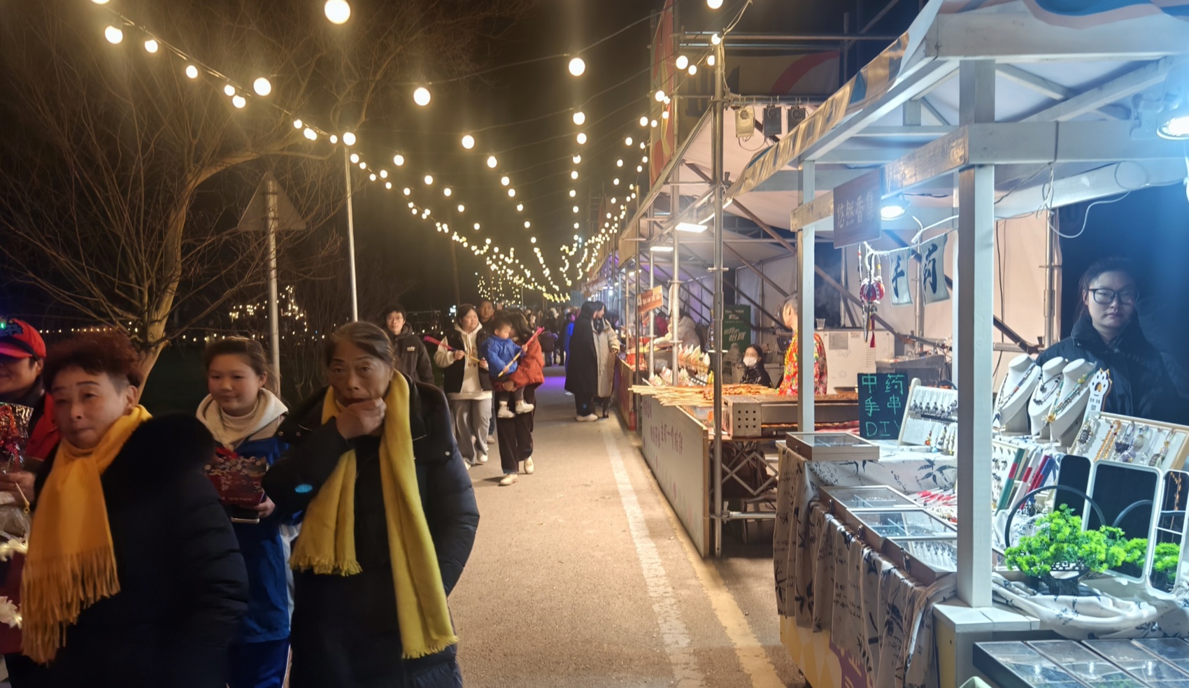 新津天府農博園的市集同樣人頭攢動。逛市集“買買買”的間隙,旁邊的演出就沒停過——廣場舞大賽上舞者的熱舞點燃全場,躍馬江湖·圍爐音樂會添足趣味,游人嘗著田間鮮貨、玩著非遺手作,伴著熟悉的經典曲目,逛得不亦樂乎。