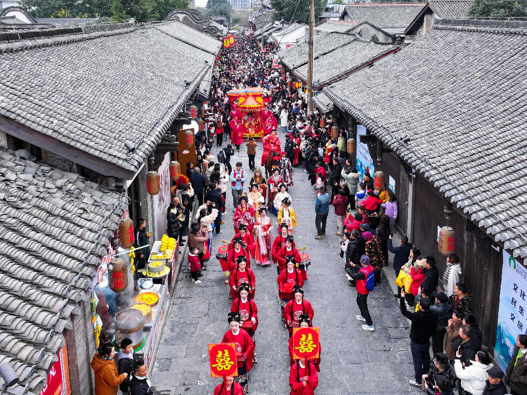 青白江千年古城城廂同樣好戲連臺:悠揚音樂會、精彩圍棋賽、沉浸式十里紅妝巡游、經典國粹戲曲展演,一場接一場的精彩,讓千年古城滿是年味。