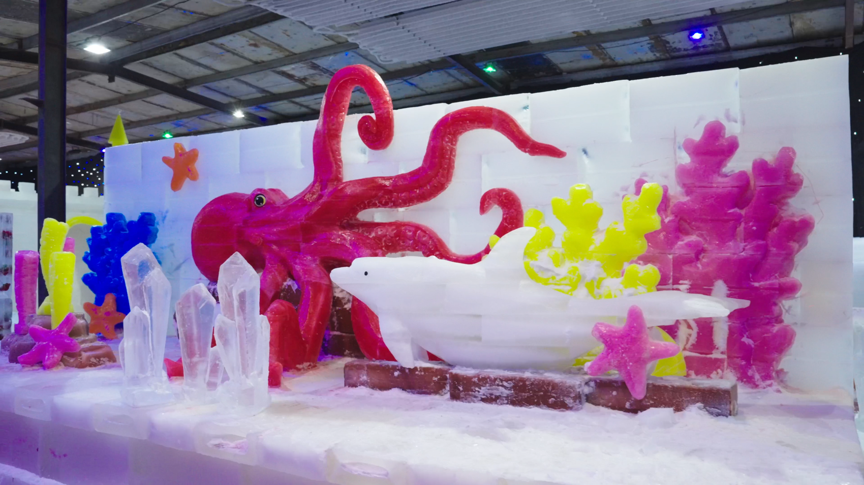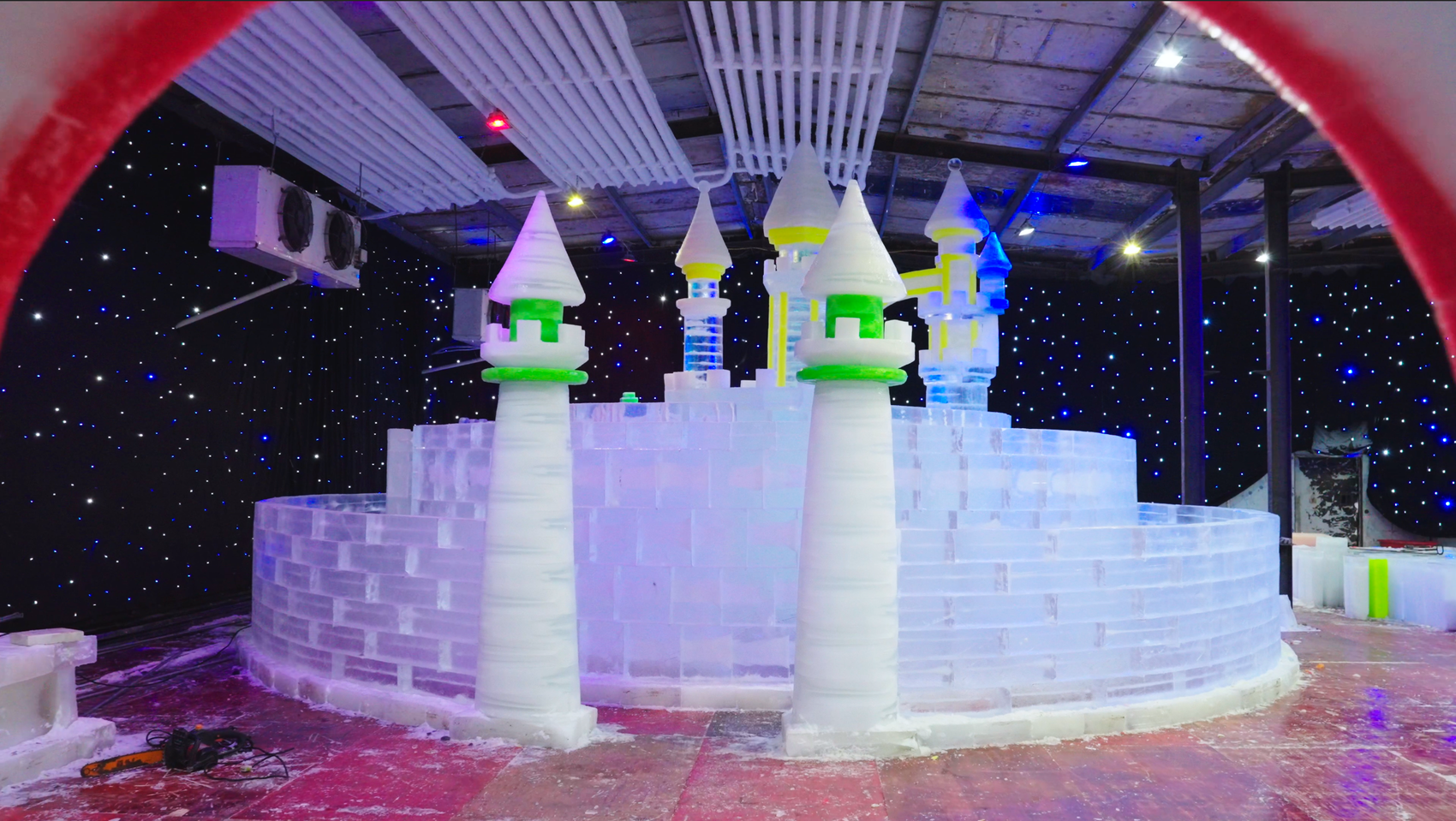 冰雪大世界由來自哈爾濱的專業團隊設計建造,以超過150噸、每塊重約60斤的純凈冰塊為材料,打造出平均厚度超過20厘米的各類冰雕景觀。海底世界、冰山企鵝、冰封玫瑰以及富含地方文化特色的“巴王巴后”等作品,在多彩燈光映照下晶瑩奪目、栩栩如生。游客既可觀賞拍照,也可體驗冰滑梯的暢快、玩雪區的歡樂。依托專業制冷與保溫技術,該場館可實現四季開放,持續提供冰雪樂趣。