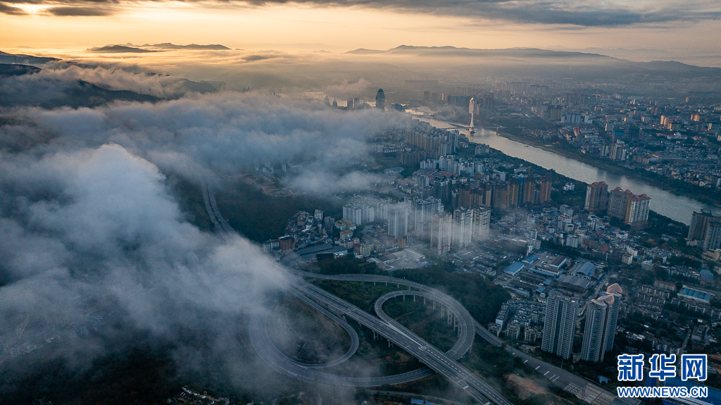 在西雙版納傣族自治州景洪市的南聯山,黎明前的云海如乳白色的“絨毯”平鋪舒展。當旭日初升時,云開霧散,城市的輪廓也逐漸清晰可見。這幅融匯了自然奇觀與人間煙火的清晨畫卷,輝煌而靈動。