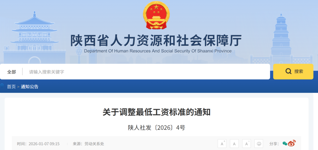 為增加低收入勞動者收入,按照《陜西省最低工資規定》,經人社部批復、省政府批準,對我省最低工資標準進行調整。現就有關事項通知如下: