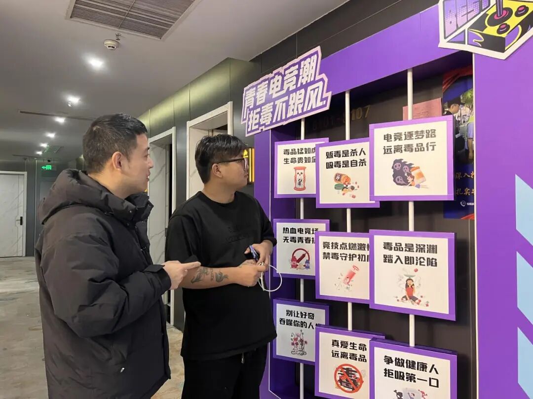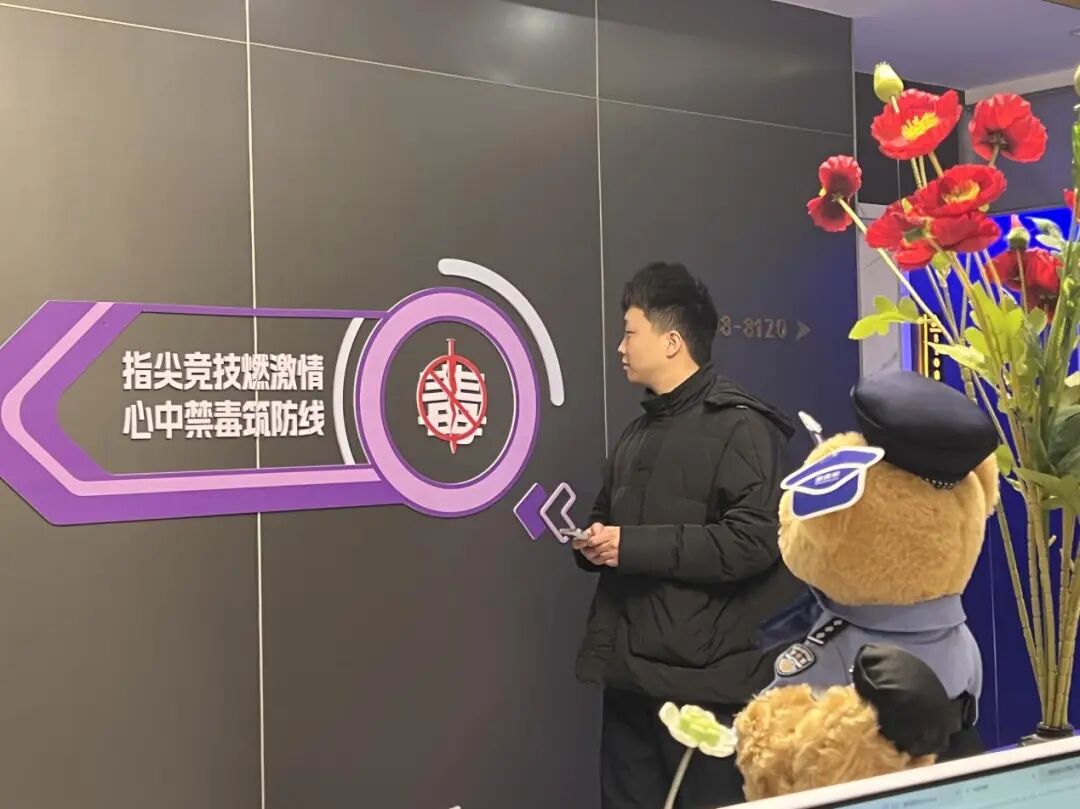 步入禁毒主題電競酒店,公共區域的互動打卡墻,以及“指尖競技燃激情,心中禁毒筑防線”、“吸食‘笑氣’,人生悲劇”等創意警示貼格外醒目,禁毒的氛圍自然滲透其間,吸引不少年輕人駐足。