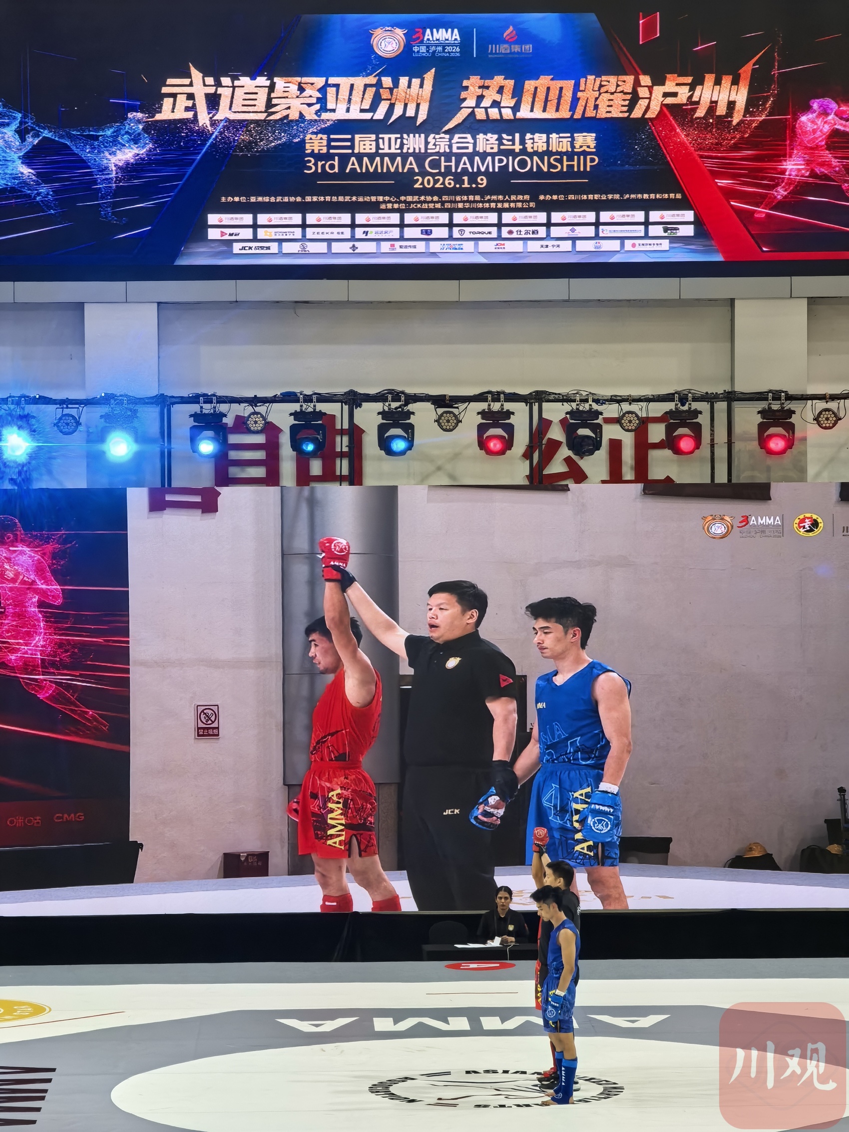 “比賽項目包含現代綜合格斗和傳統武道兩個類別,三天后產生的6個冠軍,將獲得進軍2026亞運會資格?!钡谌龑脕喼蘧C合格斗錦標賽賽事組委會主席楊宇表示,此次比賽在瀘州舉行,將推動綜合格斗運動在中國進一步普及,是中國武術搏擊事業國際化、規范化發展的一個標志性事件。