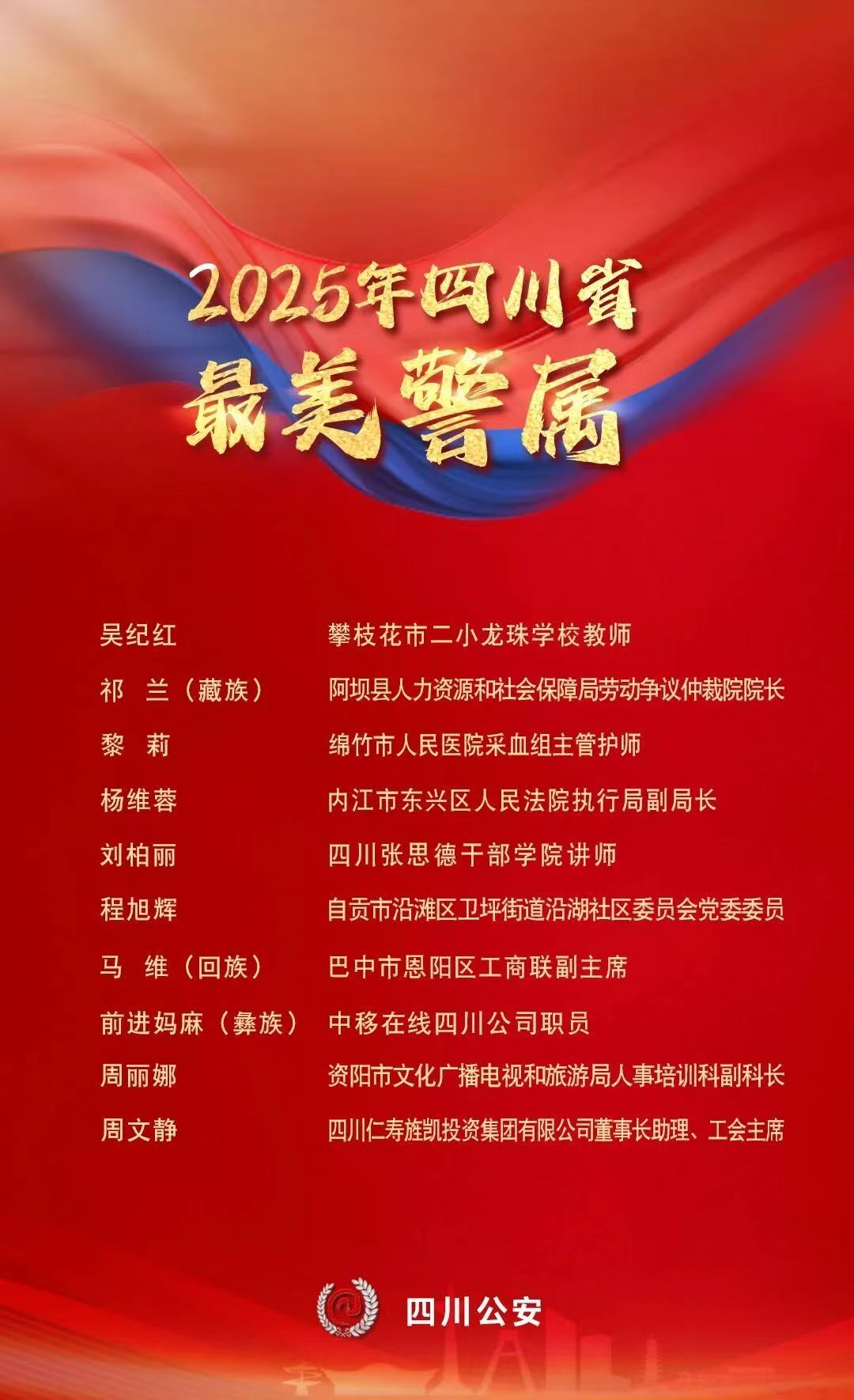 據(jù)悉,去年下半年,四川省公安廳聯(lián)合中共四川省委宣傳部組織開展了2025年四川省“最美基層民警、最美警屬”學(xué)習(xí)宣傳活動。活動開展以來,各市(州)黨委宣傳部、公安機關(guān)精心組織策劃,深入宣傳展示,嚴格審核推薦,集中宣傳選樹了一批奮戰(zhàn)在公安一線,嚴格規(guī)范公正文明執(zhí)法,在法治公安建設(shè)中勇于擔當作為的優(yōu)秀基層民警,宣傳選樹了一批涵養(yǎng)家庭美德、勇挑家庭重擔的優(yōu)秀警屬。