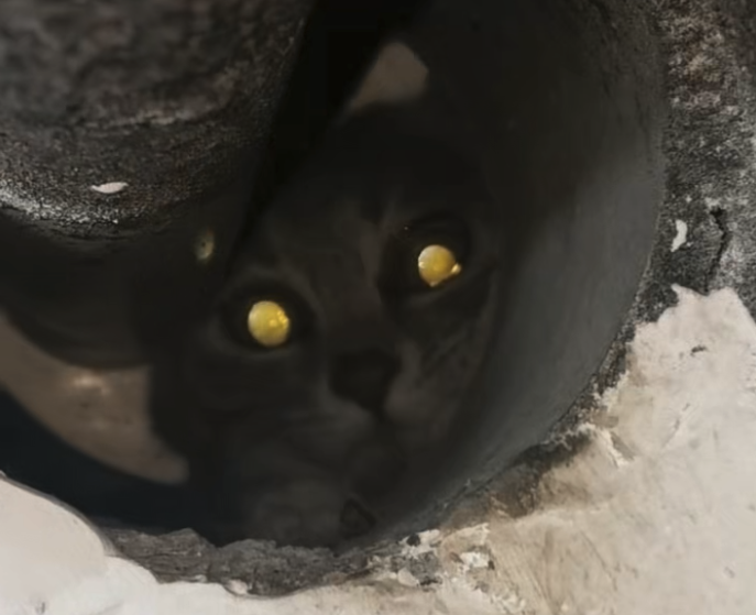 陽臺上的管道伸進墻壁,順著管道與墻體的縫隙,李女士舉起手機電筒往里照——一雙發亮的眼睛正望著她。原來,一只小貓咪被困在狹窄的管道夾層中?!八s在那么小的空隙里,眼睛圓圓的,閃著光,就那么看著我?!崩钆炕貞浀?。