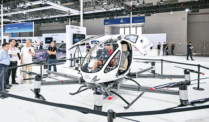 2025世界智能產業博覽會于9月5日至8日在重慶舉行,本屆智博會以“人工智能+”和“智能網聯新能源汽車”為年度主題,集中展示一系列與人們生產生活息息相關的新技術、新產品、新場景。圖為9月5日觀眾在智博會上參觀、體驗“飛行汽車”。 新華社記者 王全超/攝