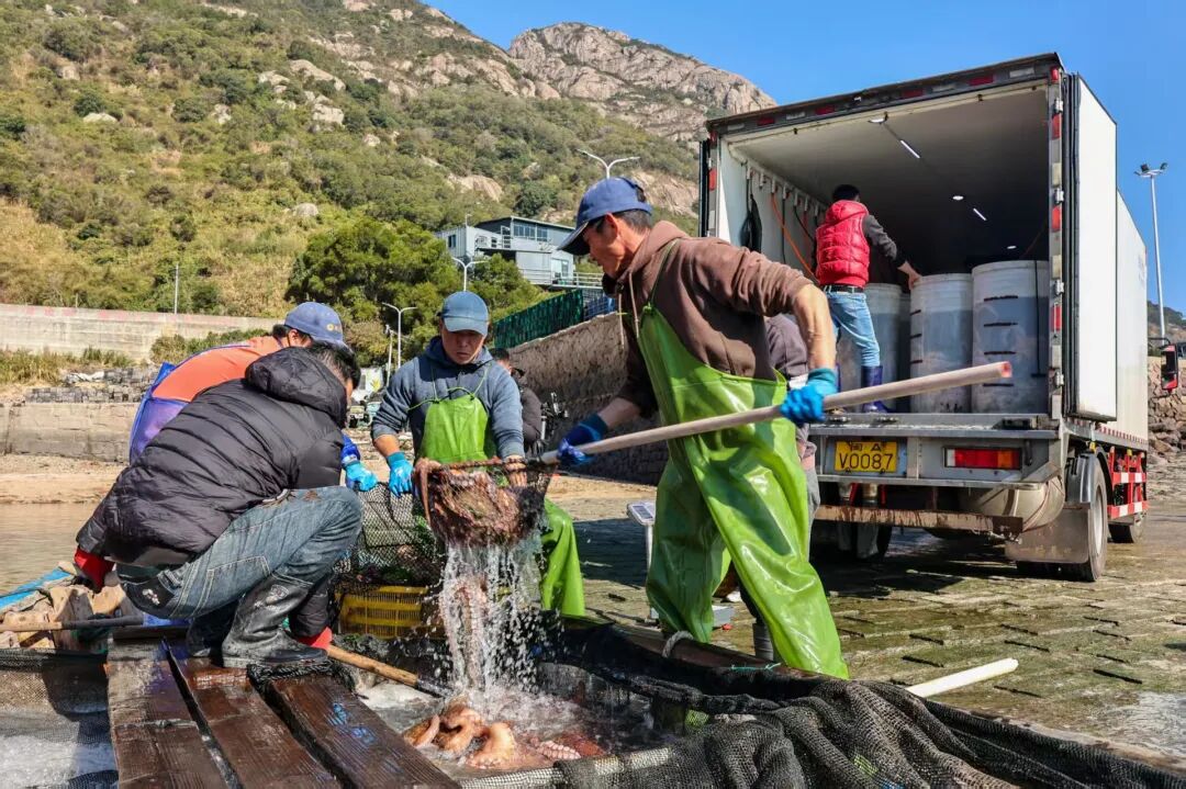 在碼頭,前來采購的經(jīng)銷商早已等候多時。“連江章魚品質(zhì)好,我們最近每天收購量在四千斤左右。”收購商陳其財表示,章魚作為熱門年貨海鮮之一,近期需求持續(xù)上升,春節(jié)前后收購量預(yù)計每天可達(dá)一萬斤以上。據(jù)悉,這些章魚除了滿足本地市場外,還將銷往廣東、上海及北京等全國多地。