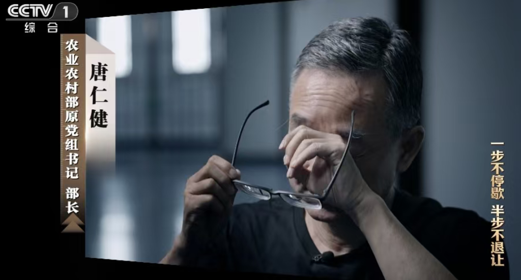 第一集中,農(nóng)業(yè)農(nóng)村部原黨組書(shū)記、部長(zhǎng)唐仁健亮相懺悔。