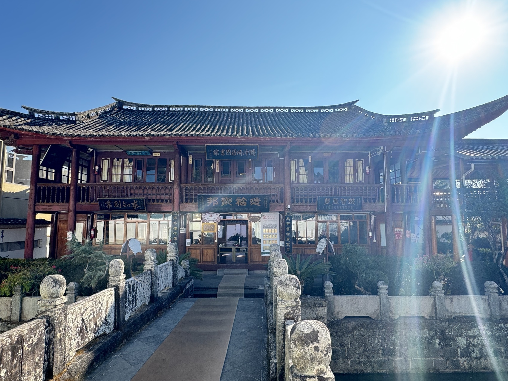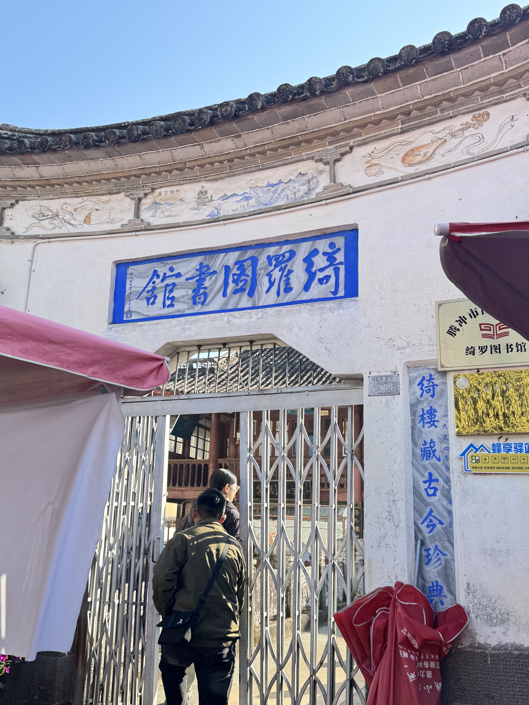2月10日上午,云南省騰沖市騰越街道下綺羅村,這座被旅居騰沖的游客發掘的網紅打卡村煙火氣十足,十字相交的街巷擺滿了攤鋪,穿過熙熙攘攘的人群,在擺滿新鮮果蔬、售賣現煮小粒咖啡的各式攤位后方,一扇鐵柵欄門靜靜隱匿。推開柵欄門,擁有一百多年歷史的綺羅圖書館便映入眼簾。
