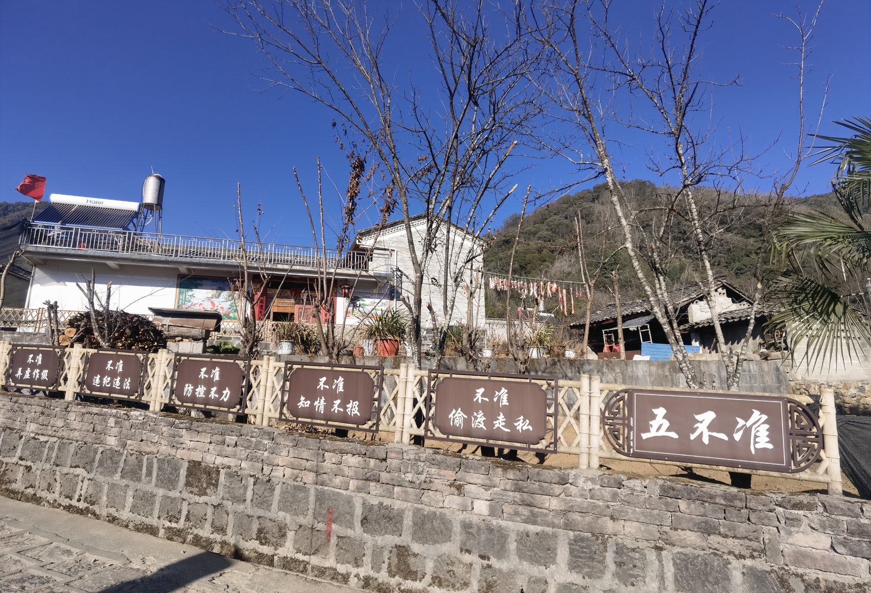 村中墻體上的“五不準(zhǔn)”標(biāo)語(yǔ)。胡桂芳 攝