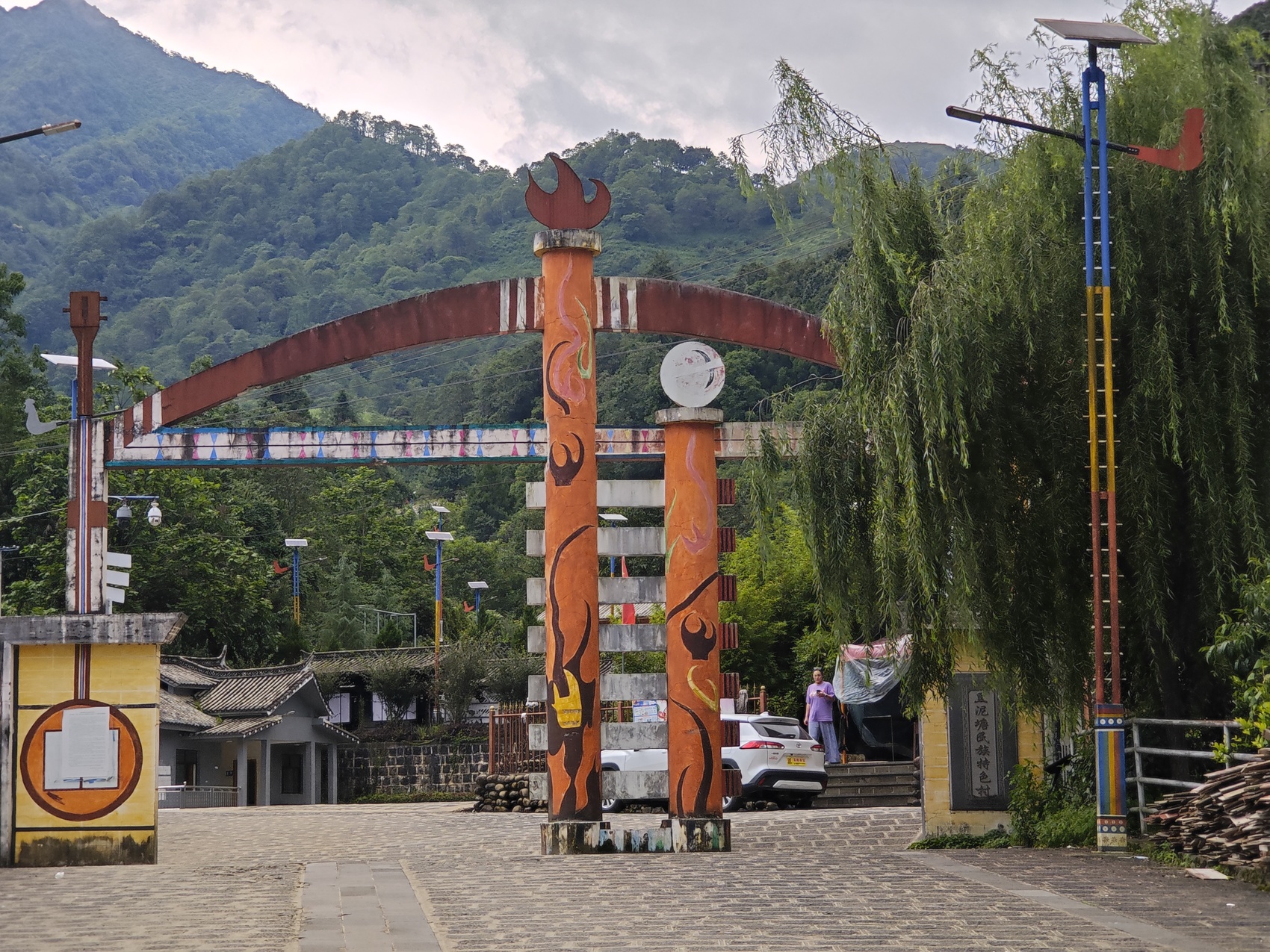沿著當(dāng)?shù)靥厣鹕绞伨偷氖迓芬宦废蚯埃考颐繎舻膲︻^都掛著國(guó)旗和用貝殼裝飾的傈僳族民族圖騰,這個(gè)邊境村共有394戶1864人,基本都是傈僳族。
