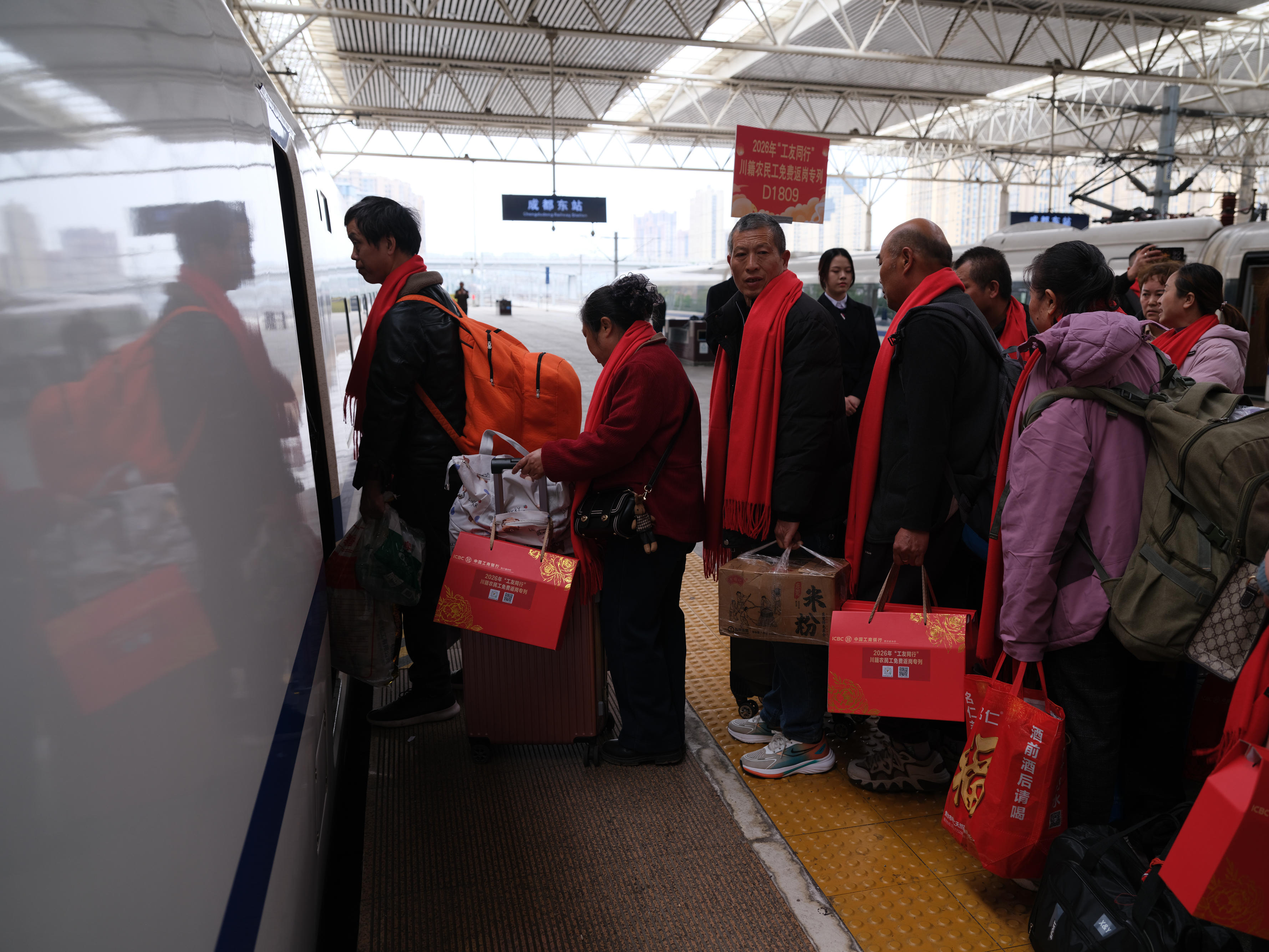 鐵路部門也為專列開行做了充分準備。廣安站和廣安南站分別優化進站、乘車流線,開設“綠色通道”,增派黨團員服務隊和志愿者,在候車區、檢票口、站臺等關鍵點位,為務工人員提供行李搬運、進站引導、乘車咨詢等全程服務。廣安南站派出所“春天的故事”黨建品牌團隊還在安檢通道、候車室開展文明出行宣傳,發放鐵路安全常識資料,引導大家安全、文明出行。