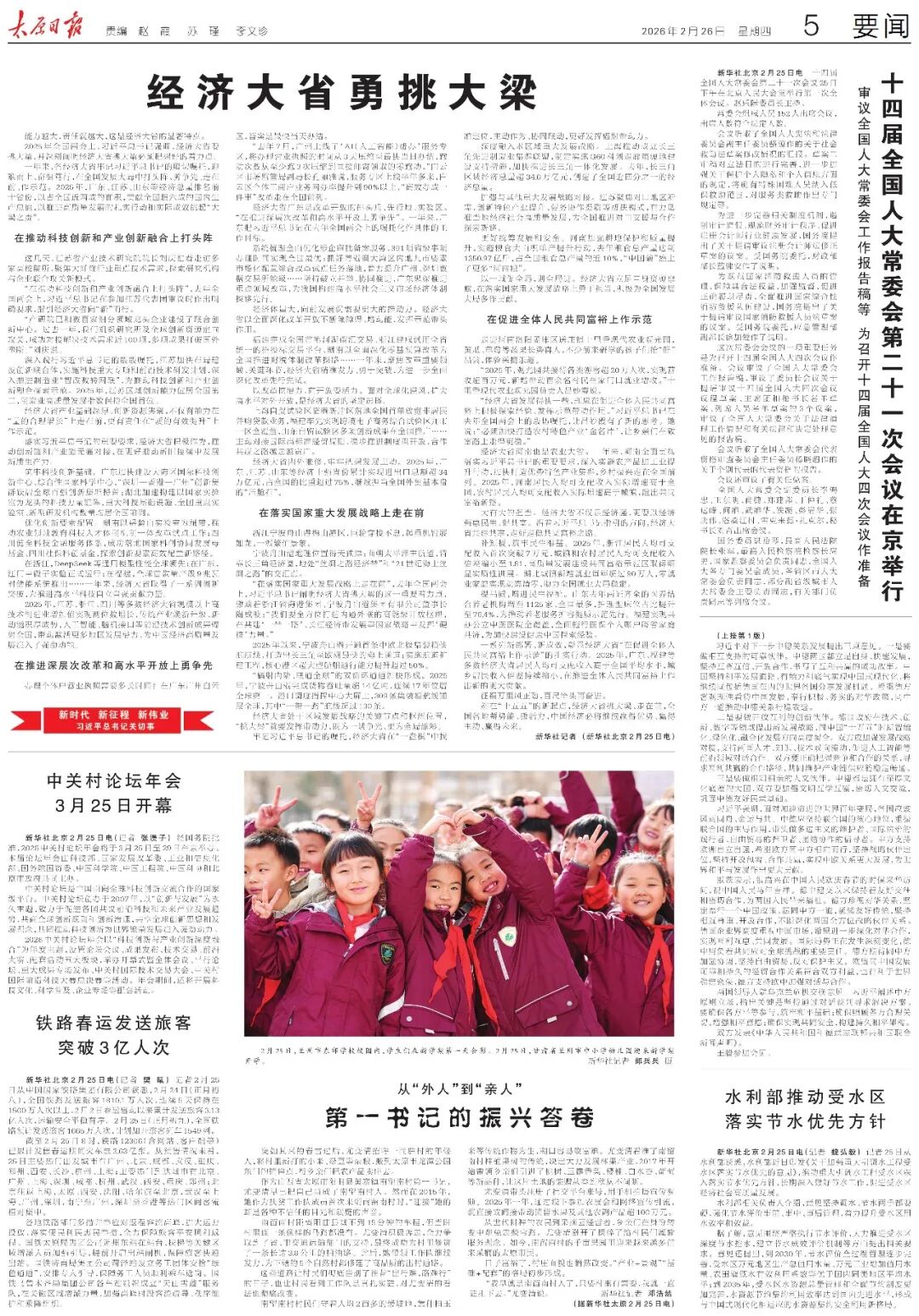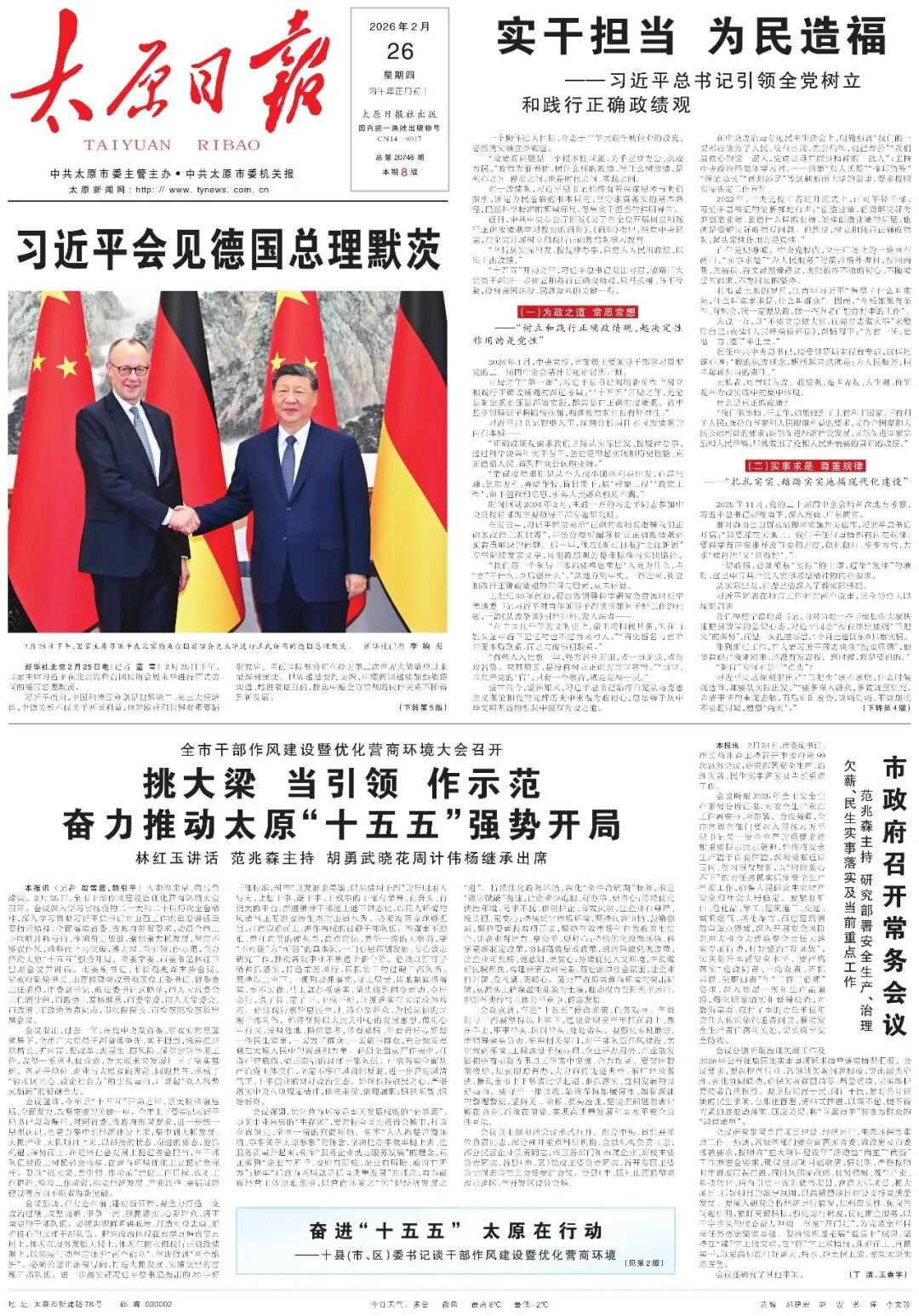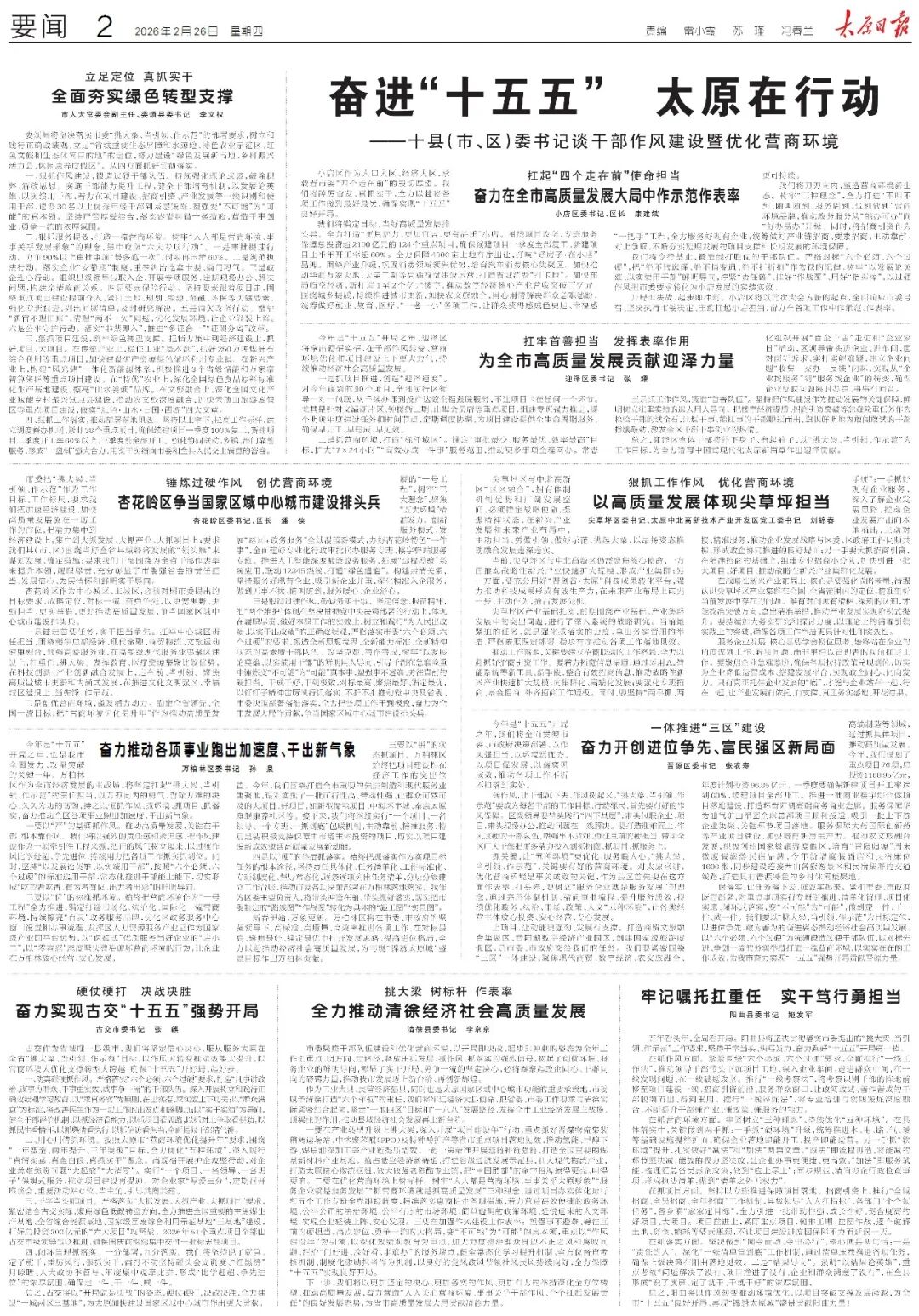 《太原日報》2026年2月26日版面速覽