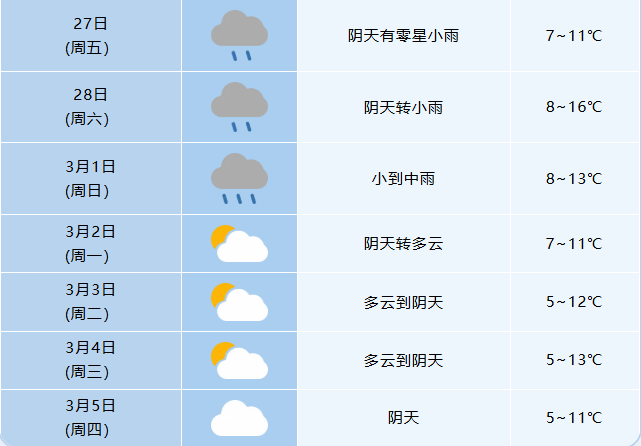 ●據安徽省氣象臺消息,27日(正月十一)至3月1日(正月十三)我省以陰雨天氣為主。3月5-6日我省還有一次降水過程。詳情>>>