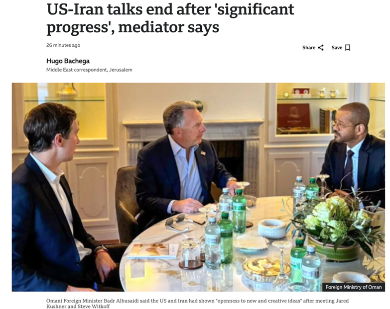 △BBC報道,雖然阿曼外交大臣表示美伊第三輪會談取得重大進展,但是否能達成避免戰爭協議仍不明朗