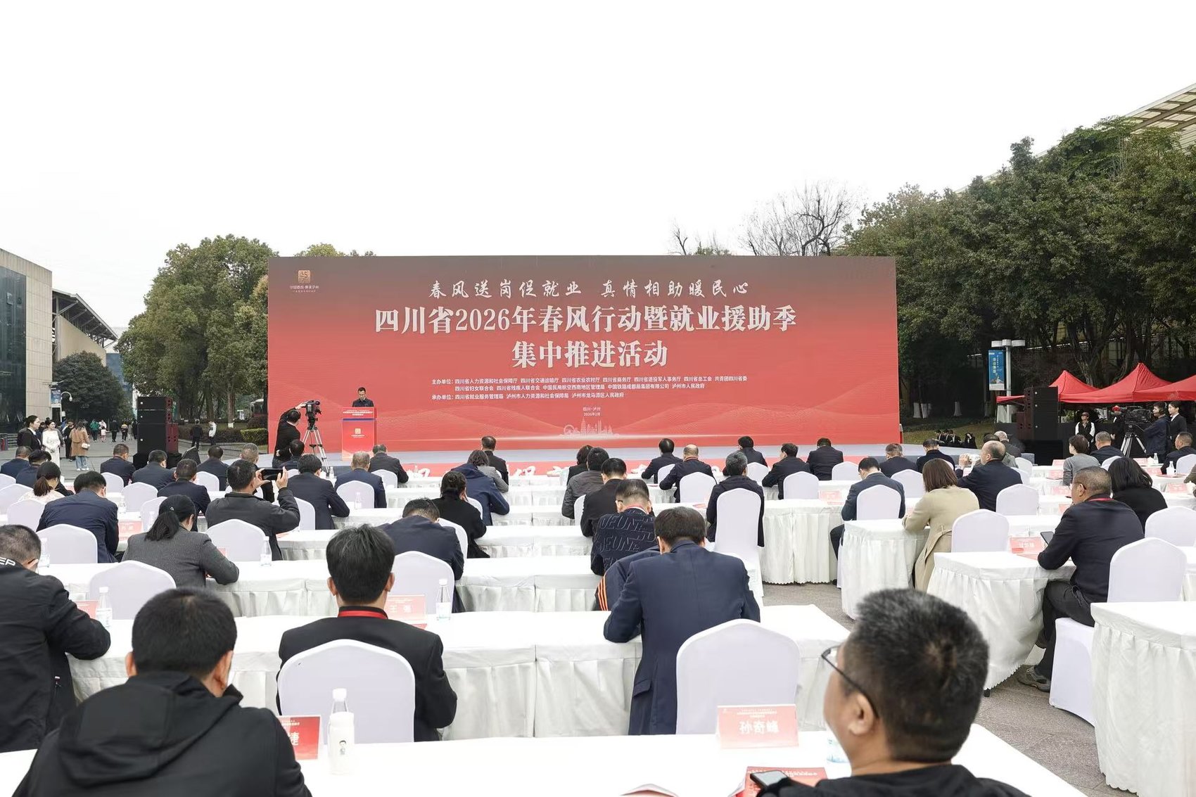 2月25日,由四川省人力資源和社會保障廳、瀘州市人民政府等12部門聯(lián)合主辦的四川省2026年春風行動暨就業(yè)援助季集中推進活動,在全省各地同步舉行,全省就業(yè)領(lǐng)域開年開局之戰(zhàn)全面打響。 本次活動以“春風送崗促就業(yè) 真情相助暖民心”為主題,啟動儀式采取“省主會場+市(州)分會場”聯(lián)動模式。綿陽、南充、資陽3個分會場通過視頻連線,實時向主會場報告活動開展情況。 在瀘州主會場現(xiàn)場,來自浙江、江蘇、重慶等8個?。ㄊ校┘俺啥肌?nèi)江、自貢等省內(nèi)5市的220家優(yōu)質(zhì)企業(yè)集中亮相,帶來2萬余個優(yōu)質(zhì)就業(yè)崗位,滿足各類群體求職需求。