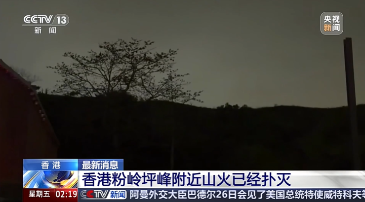 2月26日,香港粉嶺坪峰附近突發山火,火線近百米。27日凌晨,記者在山火現場看到,大火已經撲滅。