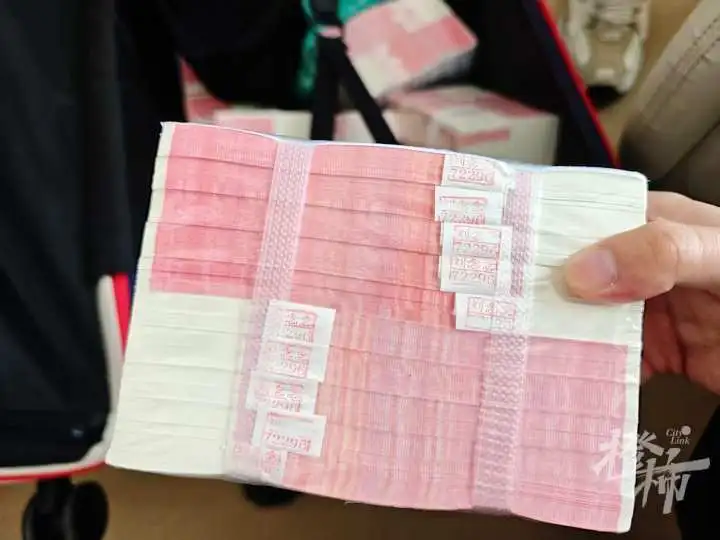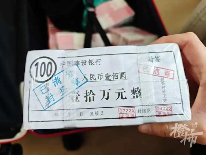 姚越操說(shuō),當(dāng)時(shí)拿起一捆,分量比較輕,不像有十萬(wàn)元,仔細(xì)查看,表面還有中國(guó)建設(shè)銀行的封簽,還蓋著銀行員工的姓名章,“并且沒(méi)有練功券的字樣,很像是真正的現(xiàn)金?!?/p>