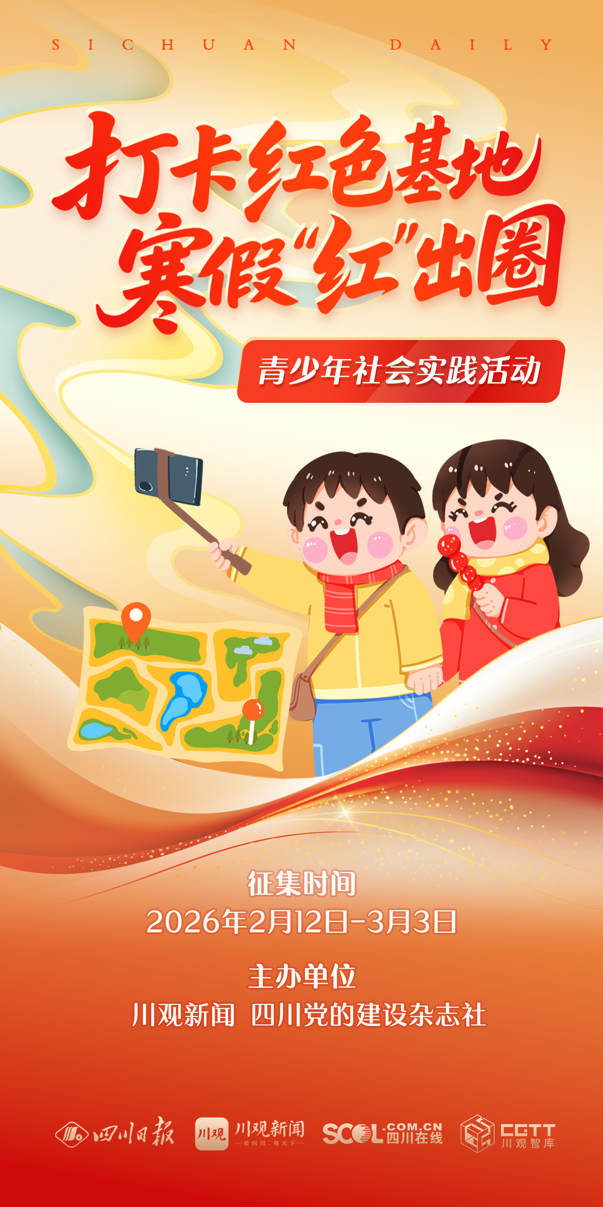 也許你已實地探訪,感觸良多卻還未整理;也許你已線上“云游”,心生共鳴正待抒懷,抓緊時間,將你的打卡照片和真摯感悟上傳至活動平臺,為寒假畫上有意義的紅色句號,讓紅色基因在青春傳承中持續閃光。