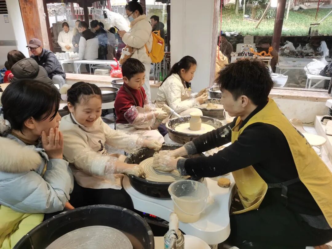 店員耐心教孩子通過拉坯制作陶藝。?中國藝術(shù)報(bào)金濤 攝