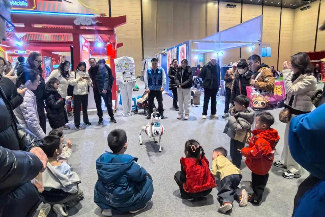 北京大都新春廟會現(xiàn)場,孩子與AI機(jī)器狗互動。中國文藝網(wǎng)高森 攝