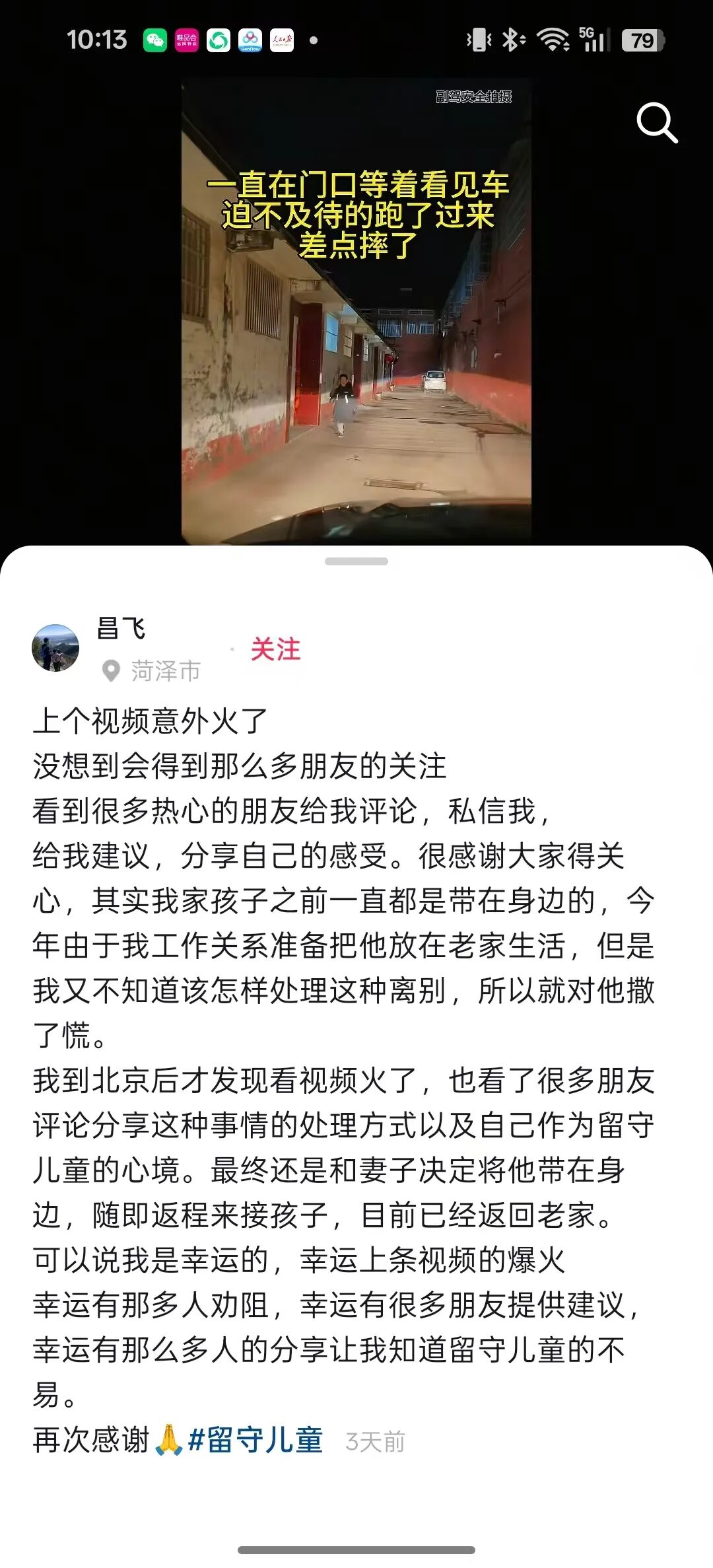 抵達北京后,母先生內(nèi)心不舍,加上看到很多網(wǎng)友紛紛留言自述作為留守兒童的經(jīng)歷,母先生還是決定第二天開車回家接上孩子。