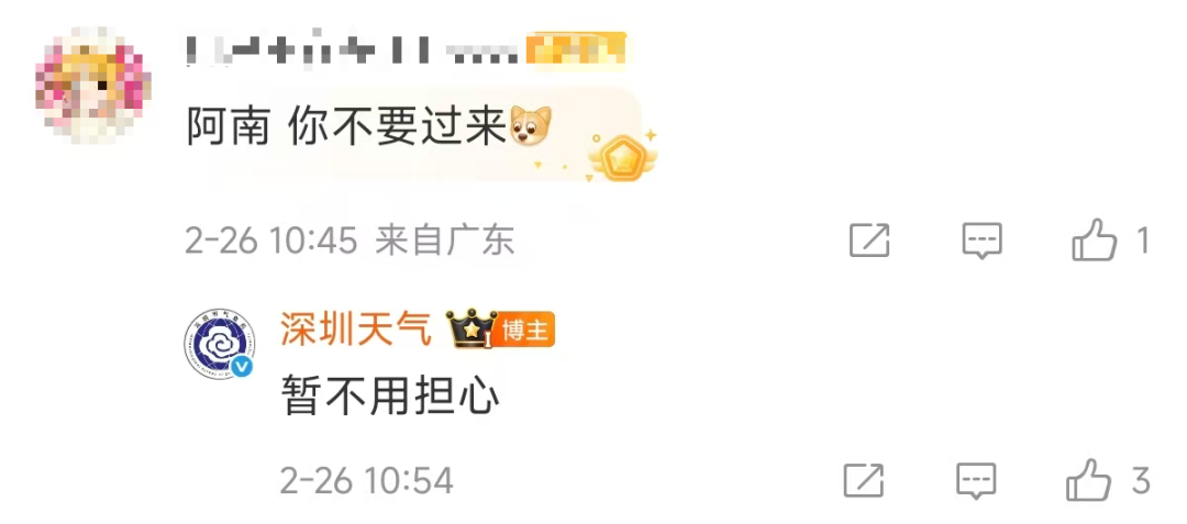 @深圳天氣也在微博回復稱