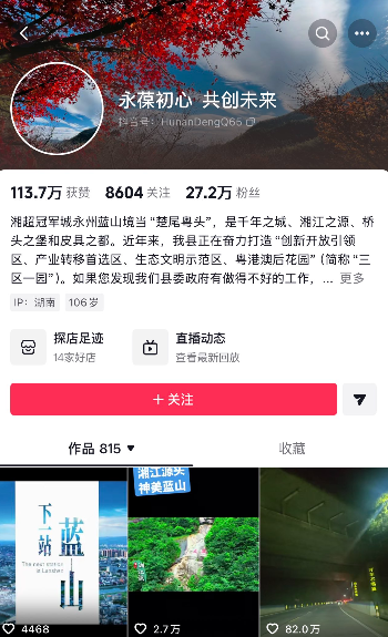 最近,藍山縣委書記鄧群的個人社交賬號火了。