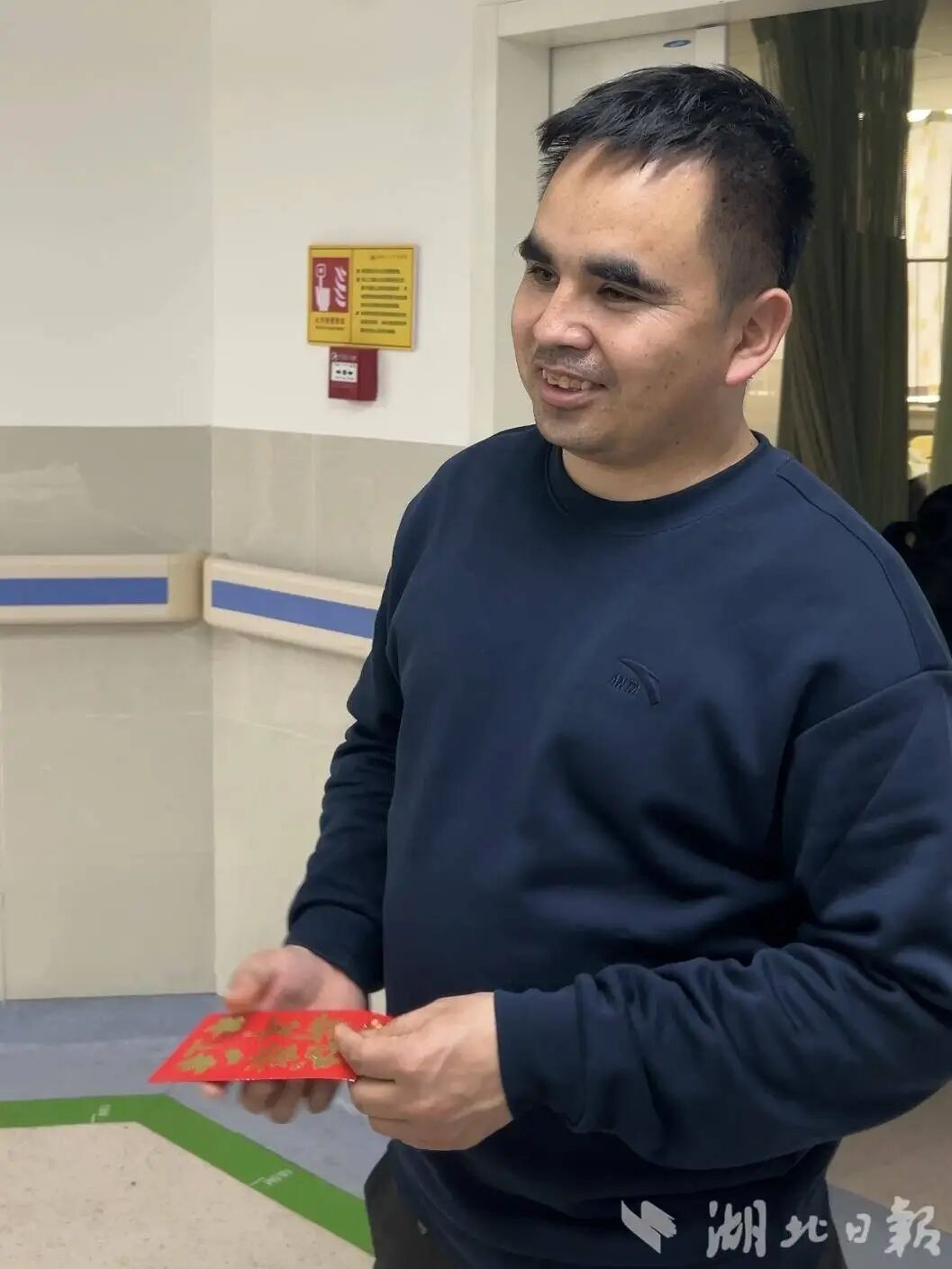 “我今天只帶了一小部分的嬰兒帽和嬰兒鞋,如果你喜歡的話,我再給你送來。這些都是當(dāng)初給自家孩子準(zhǔn)備的,但沒用上的。”15分鐘后,一位不愿透露姓名的男士也趕到現(xiàn)場,將印有“新年快樂”的紅包,親手遞到新生兒父親烏吉阿卜杜拉·艾海提手中,祝福五個(gè)寶寶在馬年茁壯成長。