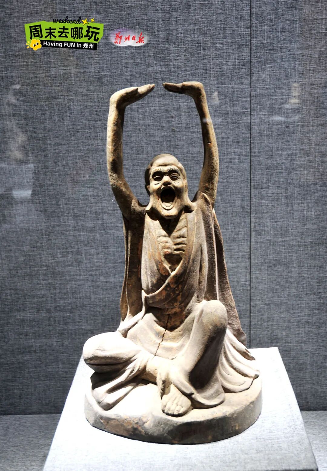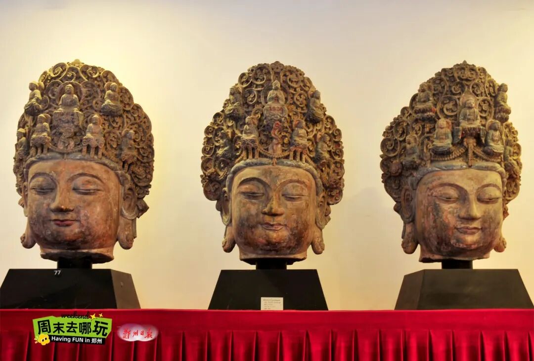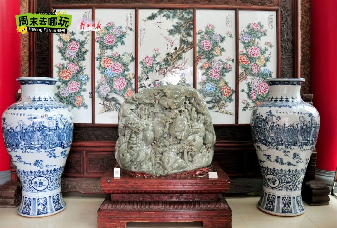 作為國家三級博物館,鄭州市天中藝術博物館的藏品涵蓋年代跨度很大,從新時期時代的生活用具到現(xiàn)代精品藝術品,材質(zhì)豐富、包羅萬象。兩處展館進門處均安置鎮(zhèn)館之寶來迎接參觀者的到來。碩大的清和田玉山子雕件和唐青石彩繪三圣佛首造像,均是文物中的精品。青玉山子重達一噸,致密堅硬又細膩溫潤,是青玉山子雕件中的重器。彩繪三圣佛首系海外回流,氣勢恢宏又神采穩(wěn)重,更是難得的民間瑰寶。