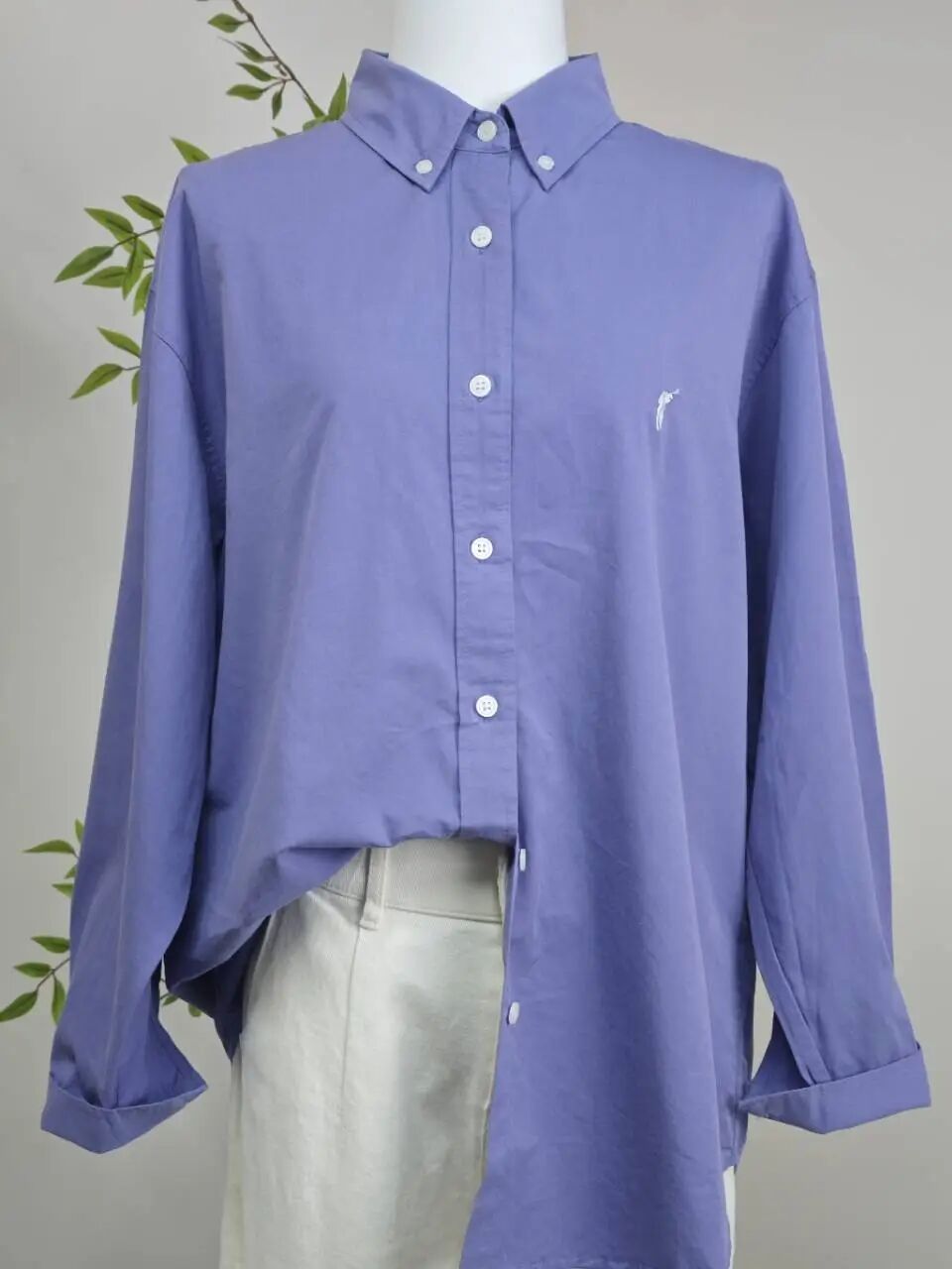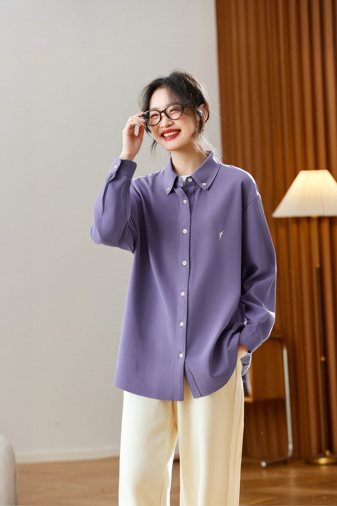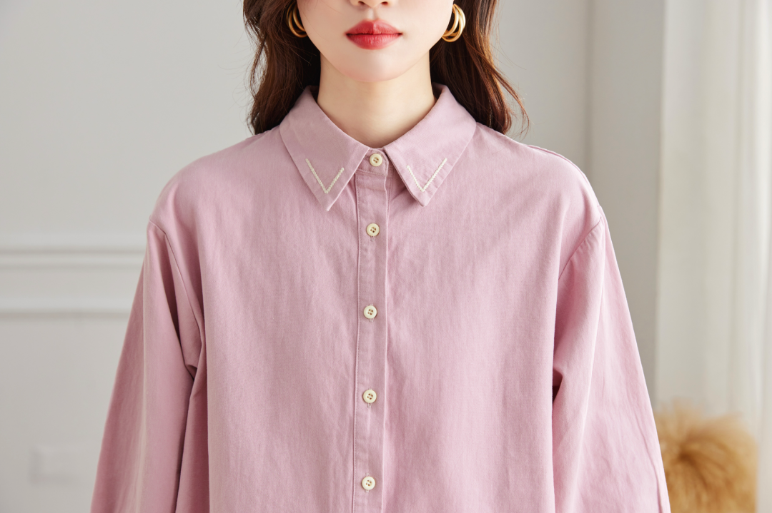 這件襯衫采用寬松版型與微落肩設計,上身舒適不緊繃。
