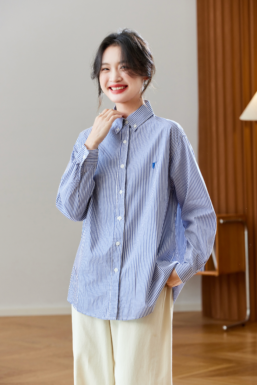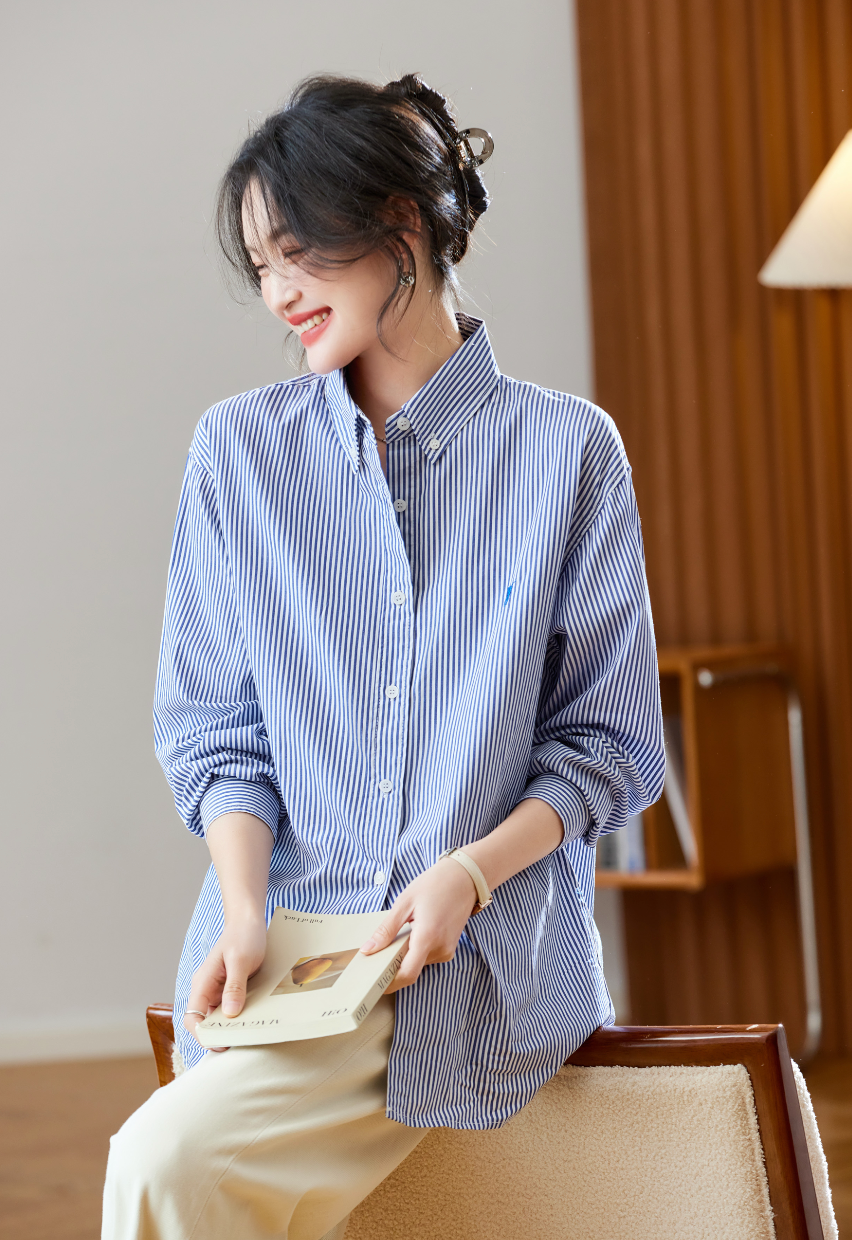 條紋襯衫是經典的職場單品,標準的藍白配色與合身版型常給人專業感。
