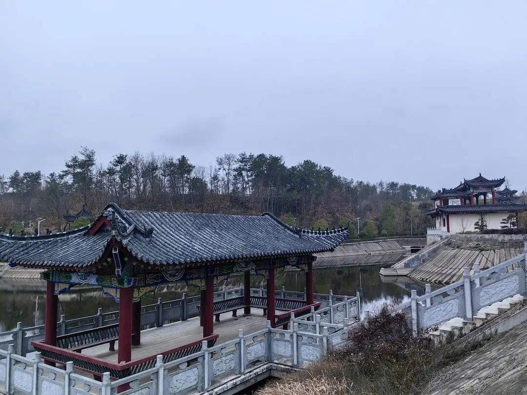 水庫周邊,沿岸被拓寬、硬化成了道路,湖面中間修建了一座水泥、青磚長橋,湖中心修建了一座水榭樓閣。記者沿路查看,發現環湖的岸邊零零散散修建了10座大小不一的近水亭臺,山坡處修建了幾段步行廊道,另外還有兩處仿古樣式的房屋。