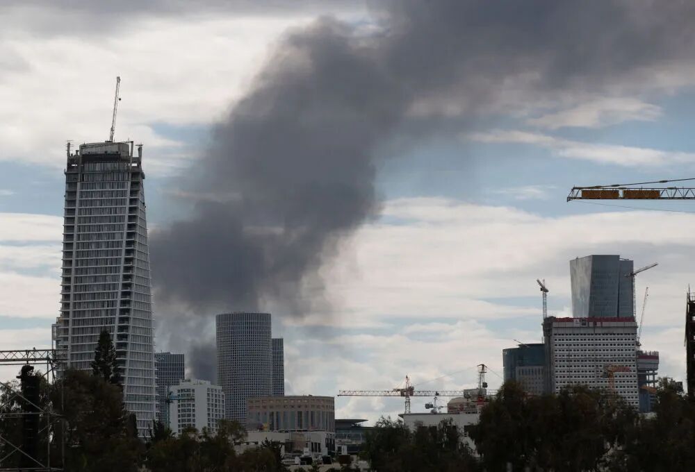 這是2月28日在以色列特拉維夫拍攝的濃煙。新華社記者陳君清攝