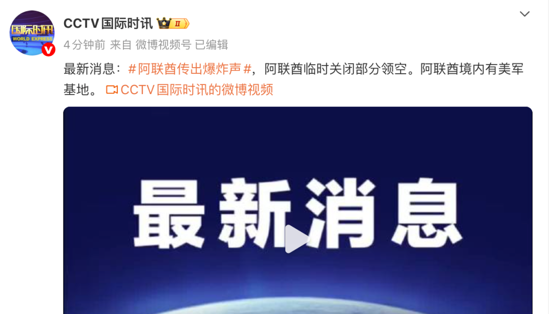 據CCTV國際時訊最新消息,當地時間28日,阿聯酋阿布扎比響起爆炸聲。阿聯酋臨時關閉部分領空。阿聯酋境內有美軍基地。