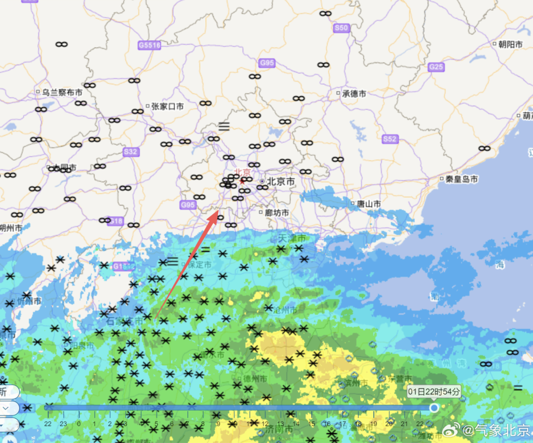 雪到哪里了?3月1日23時許,@氣象北京 更新微博:目前降雪回波前沿已到雄安一帶,過去3小時降雪量1毫米左右。