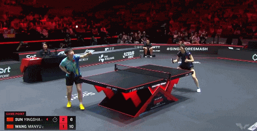 比賽一開始,孫穎莎連下兩局取得2-0領先。隨后王曼昱11比7、11比6追回兩局,將大比分追至2-2。之后孫穎莎連贏兩局,拿下比賽勝利。